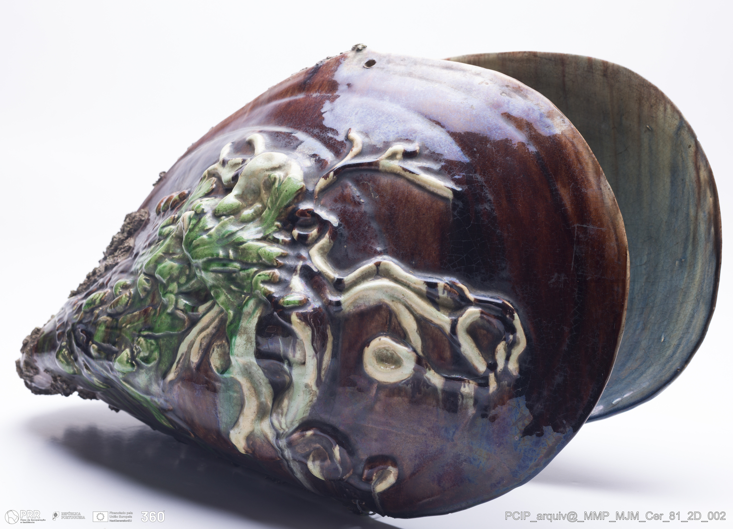 Matéria/Técnica: Barro vidrado policromado; Cronologia: Desconhecida; Autoria: Desconhecido; Dimensões: Comprimento: 46 cm.
