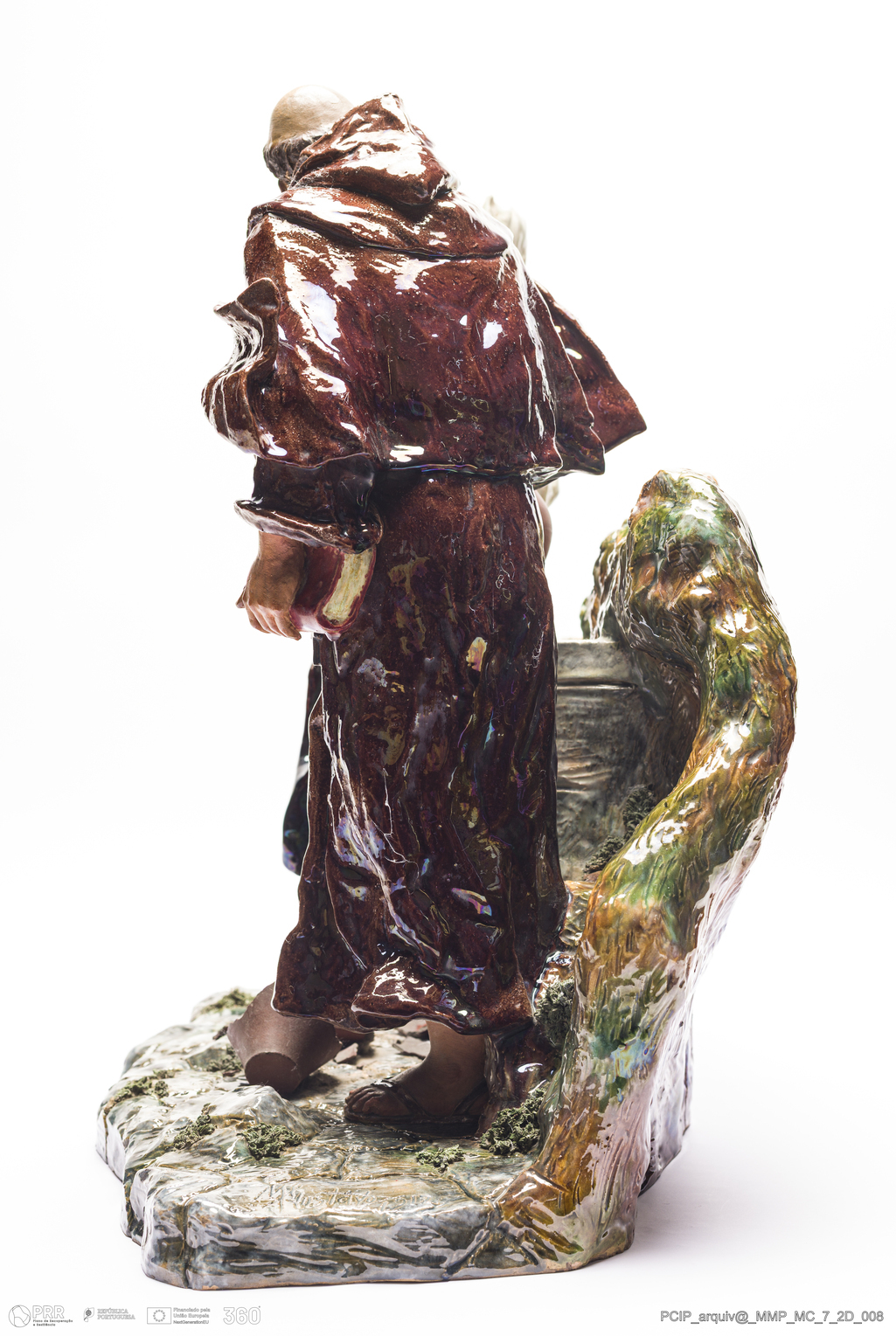 Matéria/Técnica: Barro branco e vermelho moldado e modelado. Vidrado polícromo: preto, castanho escuro e mel, verde, vermelho, camurça e branco; Cronologia: 1912; Autoria: Manuel Gustavo Bordalo Pinheiro / Fábrica Bordalo Pinheiro, Caldas da Rainha, Portugal; Dimensões (cm): Altura: 49; Largura: 51; Comprimento: 33.