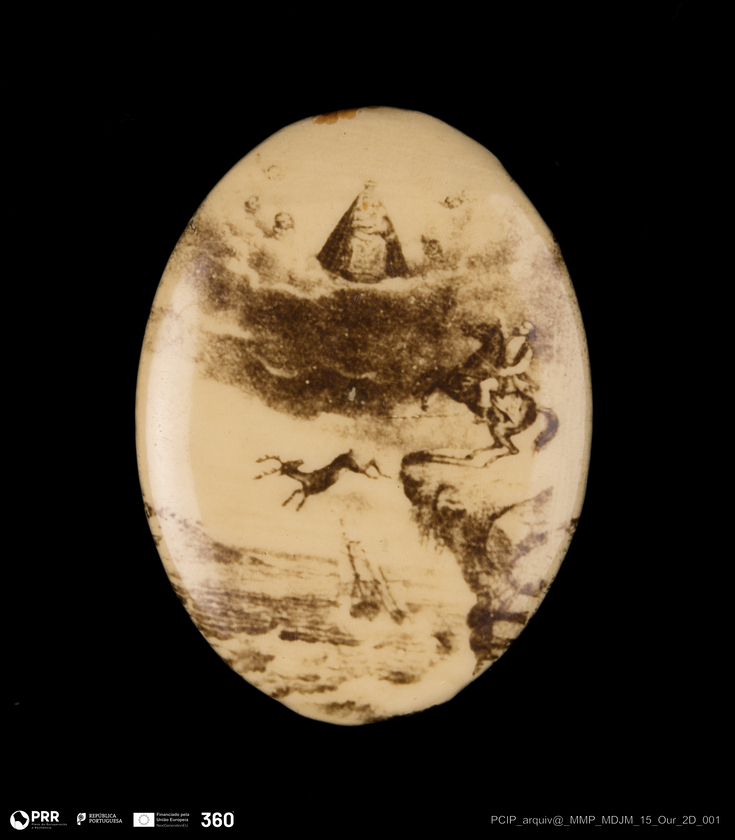 Matéria/Técnica: Esmalte; Cronologia: Séc. XX; Autoria: Desconhecida; Dimensões: Diâmetro: 2,5 cm.