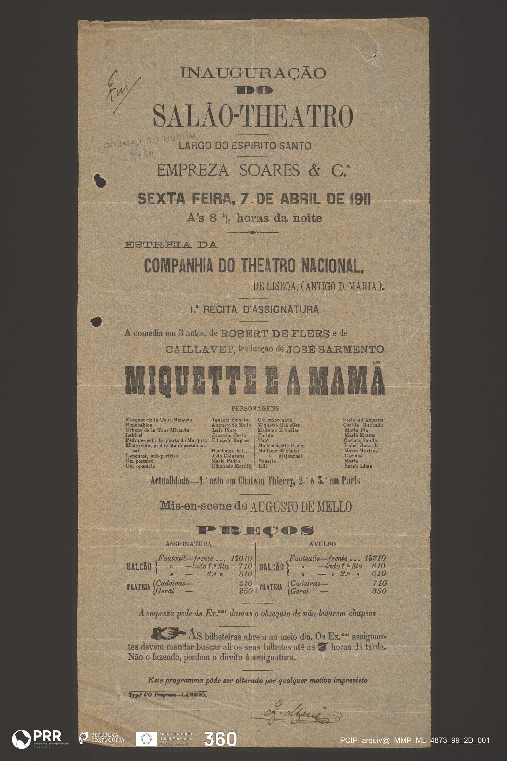 Matéria/Técnica: Impressão; Cronologia: 1911; Autoria: Desconhecida; Dimensões (cm): Altura: 42,3 x Comprimento: 20,6.
