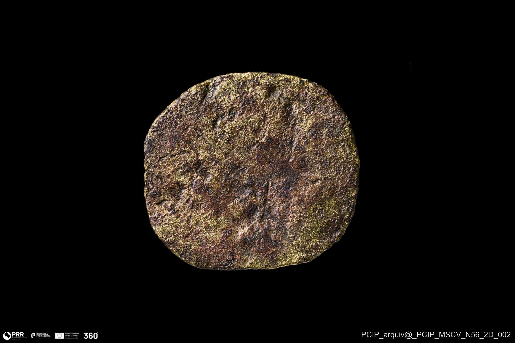 Matéria/Técnica: Metal; Cronologia: Indeterminada; Autoria: Desconhecida; Dimensões: Diâmetro: 21mm; Espessura: 1mm.