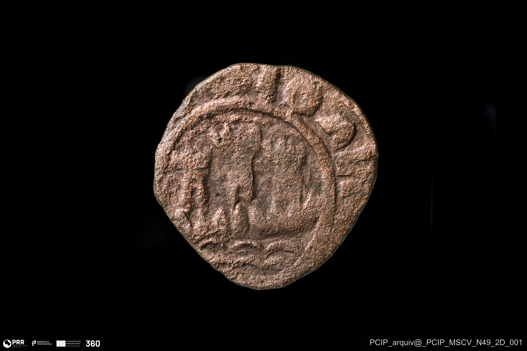 Matéria/Técnica: Metal; Cronologia: Indeterminada; Autoria: Desconhecida; Dimensões: Diâmetro: 16,5mm; Espessura: 1mm.