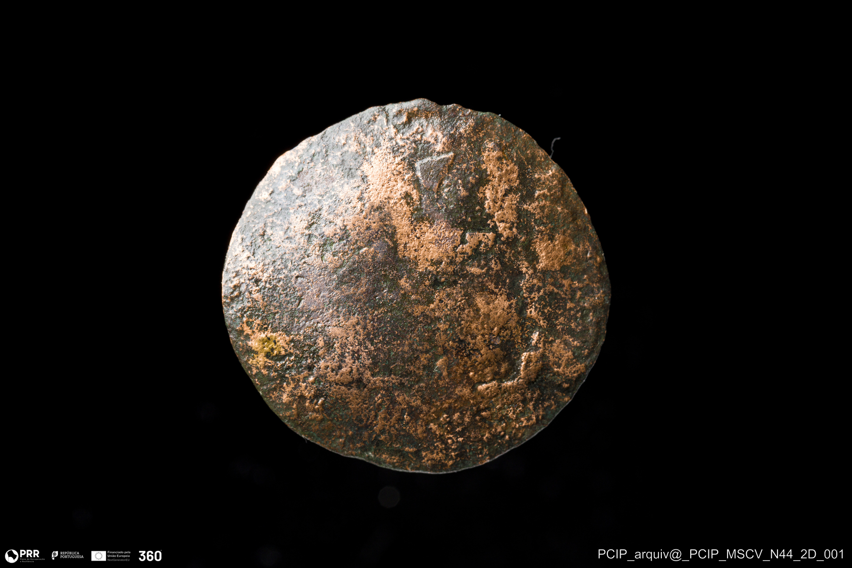 Matéria/Técnica: Metal; Cronologia: Indeterminada; Autoria: Desconhecida; Dimensões: Diâmetro: 30mm; Espessura: 1mm.