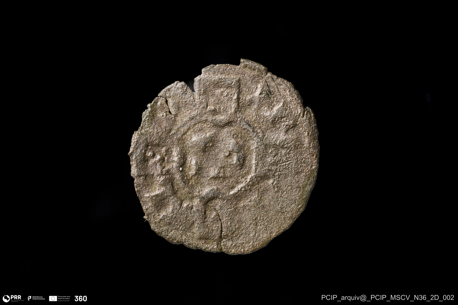 Matéria/Técnica: Metal; Cronologia: Século XV; Autoria: Desconhecida; Dimensões: Diâmetro: 17mm; Espessura: 1mm.