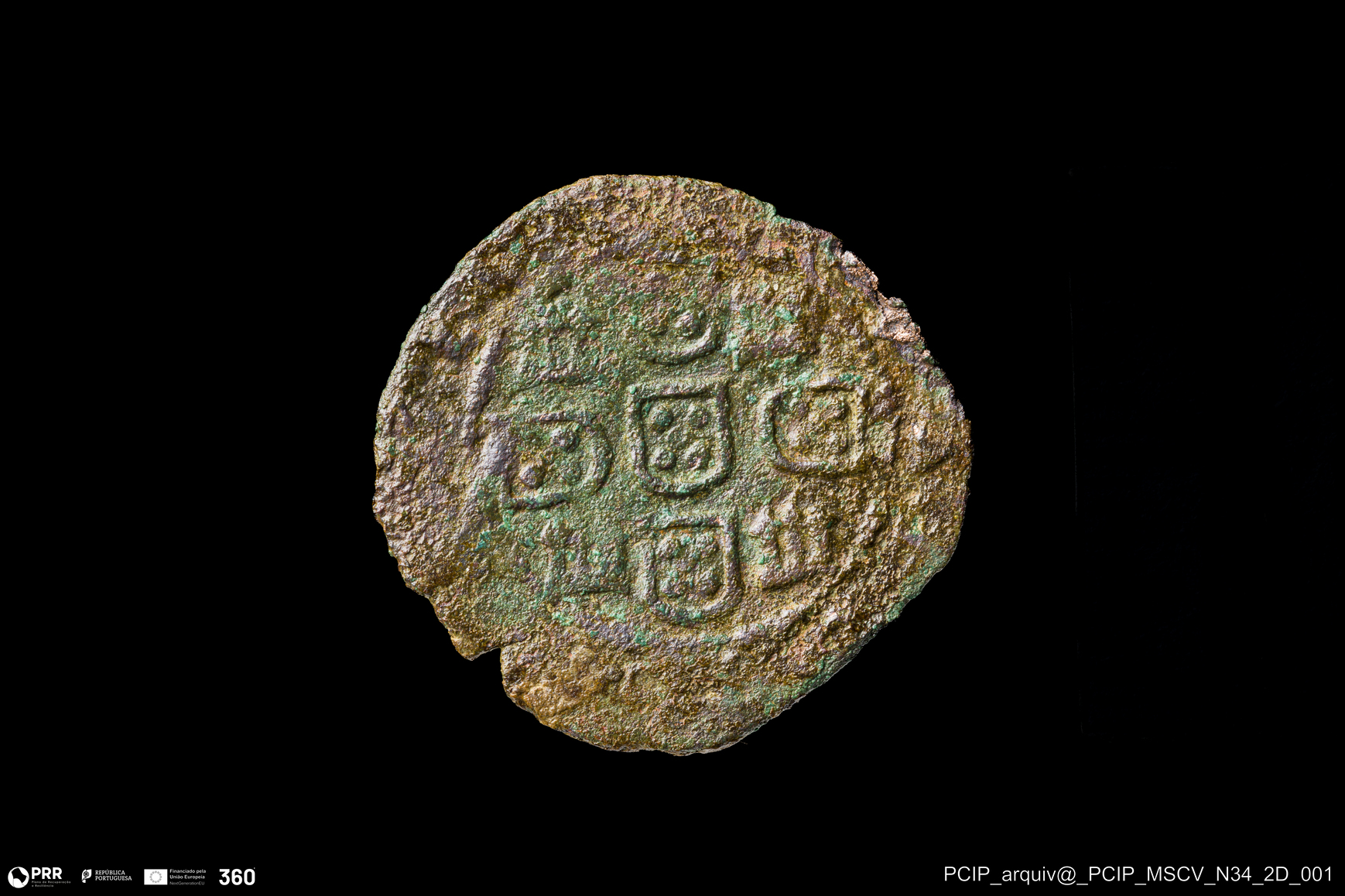 Matéria/Técnica: Metal; Cronologia: Indeterminada; Autoria: Desconhecida; Dimensões: Diâmetro: 21,5mm; Espessura: 1mm.