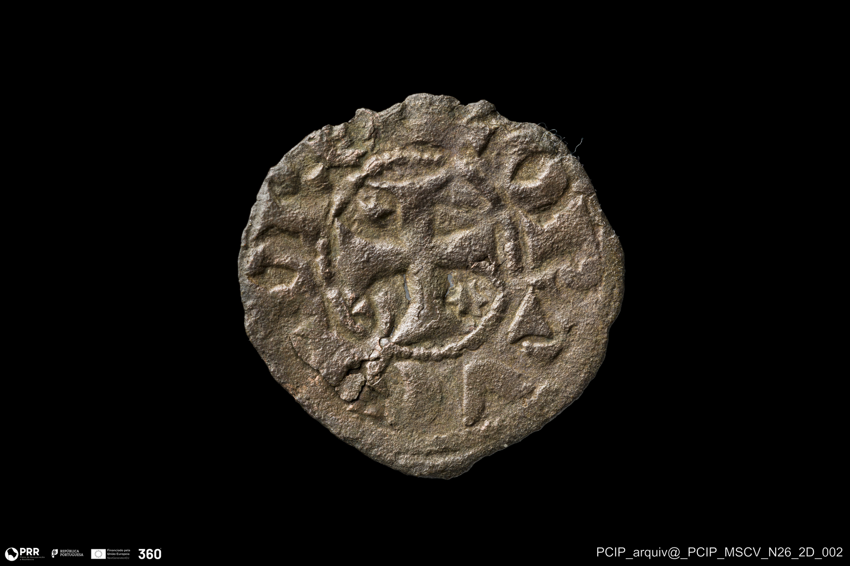 Matéria/Técnica: Bolhão; Cronologia: Século XIII (?); Autoria: Desconhecida; Dimensões: Diâmetro: 17mm.