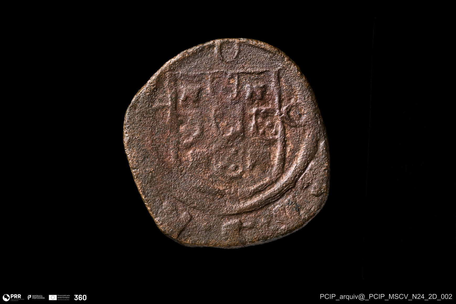Matéria/Técnica: Metal; Cronologia: Século XVI; Autoria: Desconhecida; Dimensões: Diâmetro: 18mm; Espessura: 1mm.