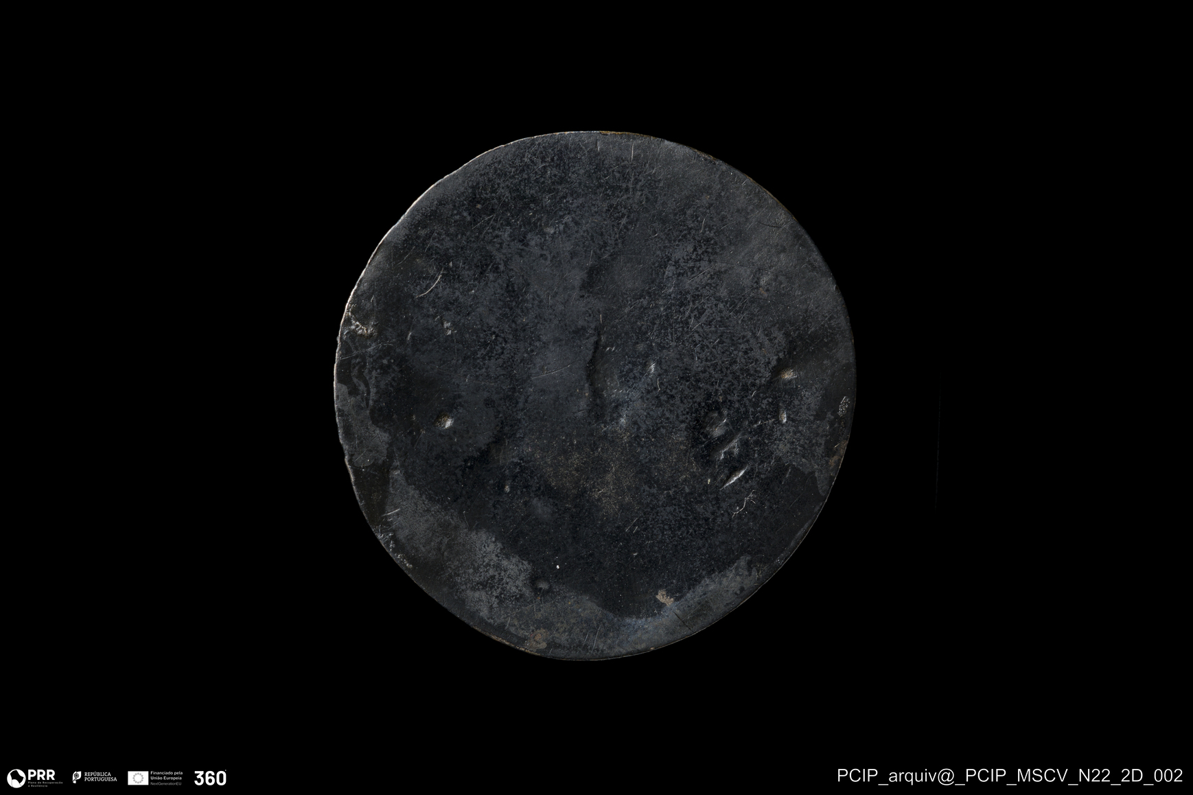 Matéria/Técnica: Metal; Cronologia: Indeterminada; Autoria: Desconhecida; Dimensões: Diâmetro: 18mm; Espessura: 0,5mm.