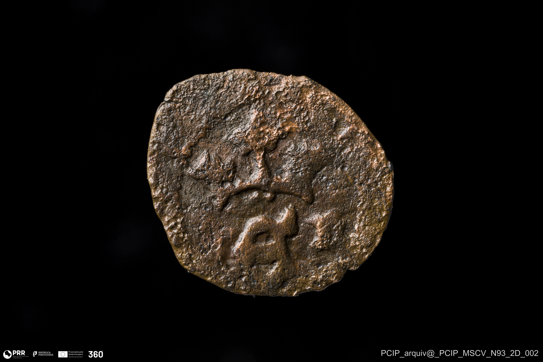 Matéria/Técnica: Metal; Cronologia: Século XIV- Século XV; Autoria: Desconhecida; Dimensões: Diâmetro: 17mm; Espessura: 1mm.