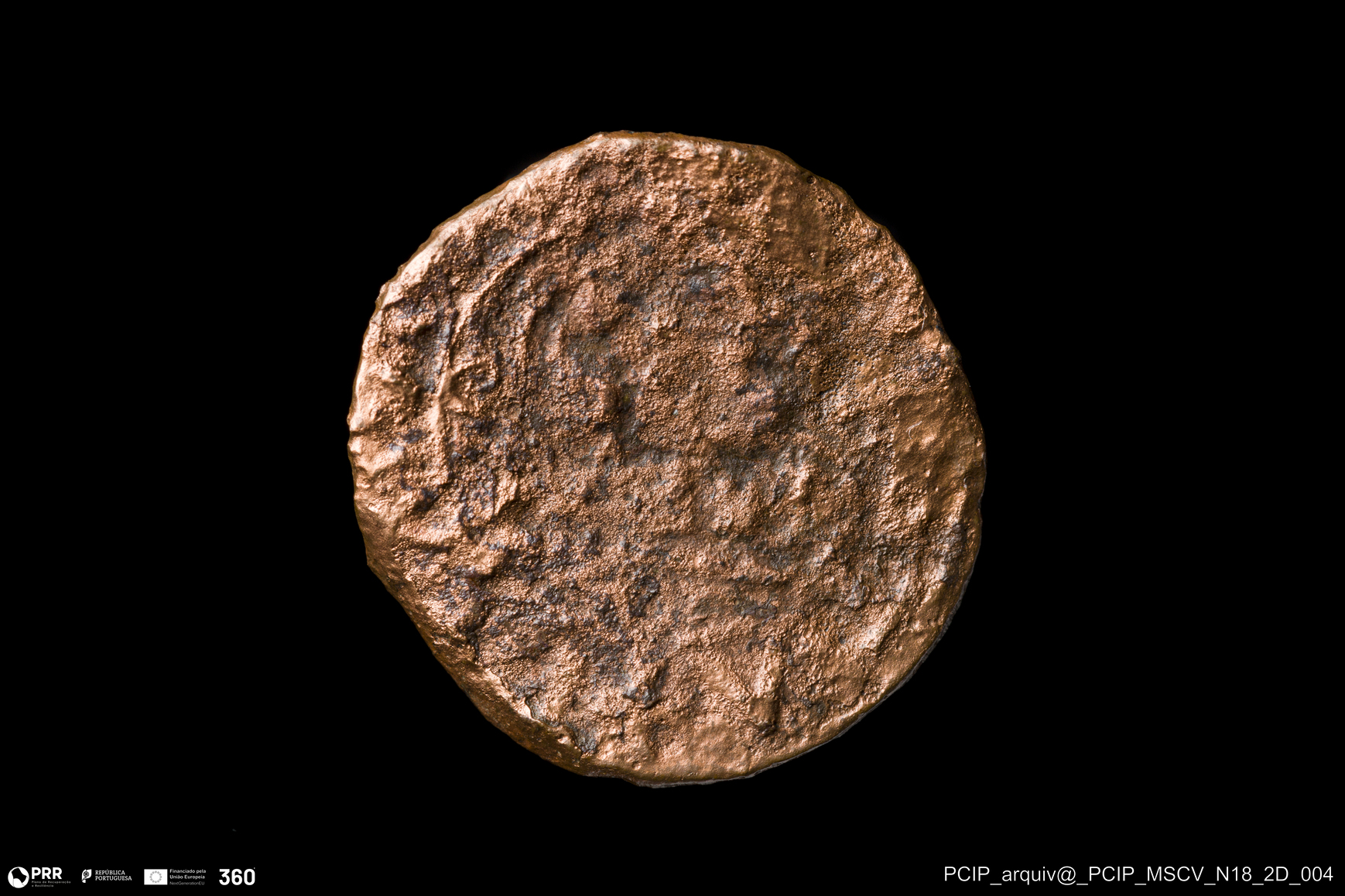 Matéria/Técnica: Metal; Cronologia: Indeterminada; Autoria: Desconhecida; Dimensões: Diâmetro: 17,5mm; Espessura: 1,5mm.