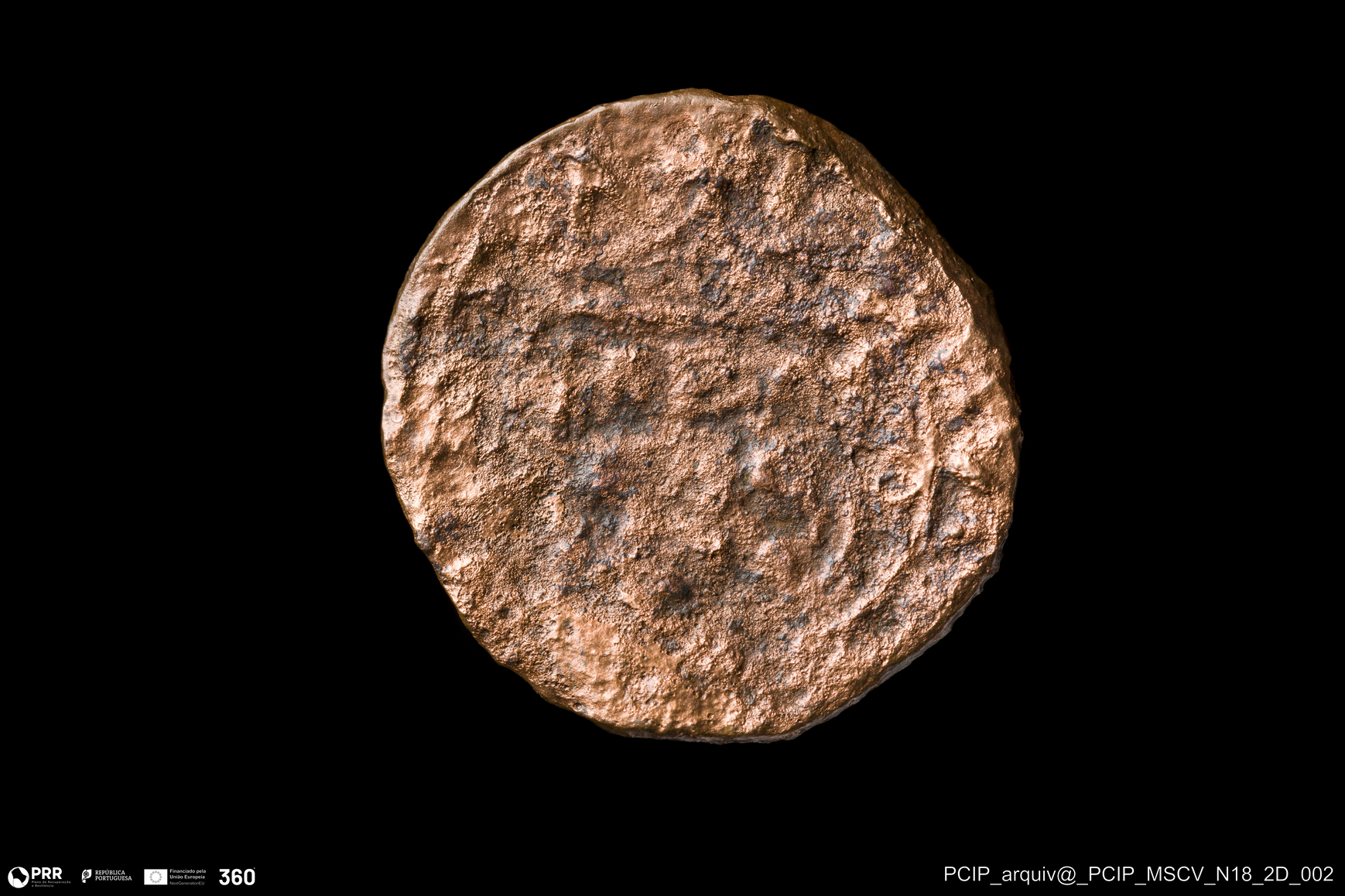 Matéria/Técnica: Metal; Cronologia: Indeterminada; Autoria: Desconhecida; Dimensões: Diâmetro: 17,5mm; Espessura: 1,5mm.
