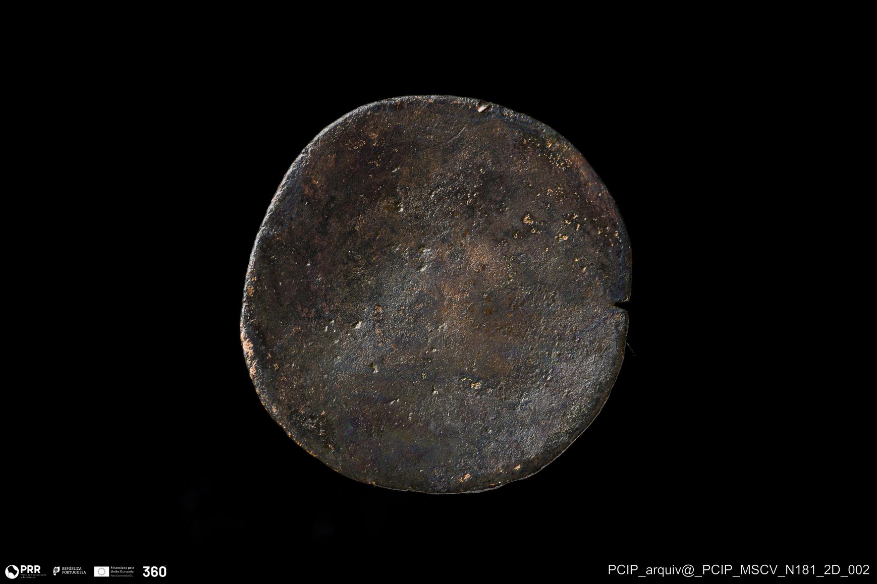 Matéria/Técnica: Metal; Cronologia: Indeterminada; Autoria: Desconhecida; Dimensões: Diâmetro: 28mm; Espessura: 1mm.