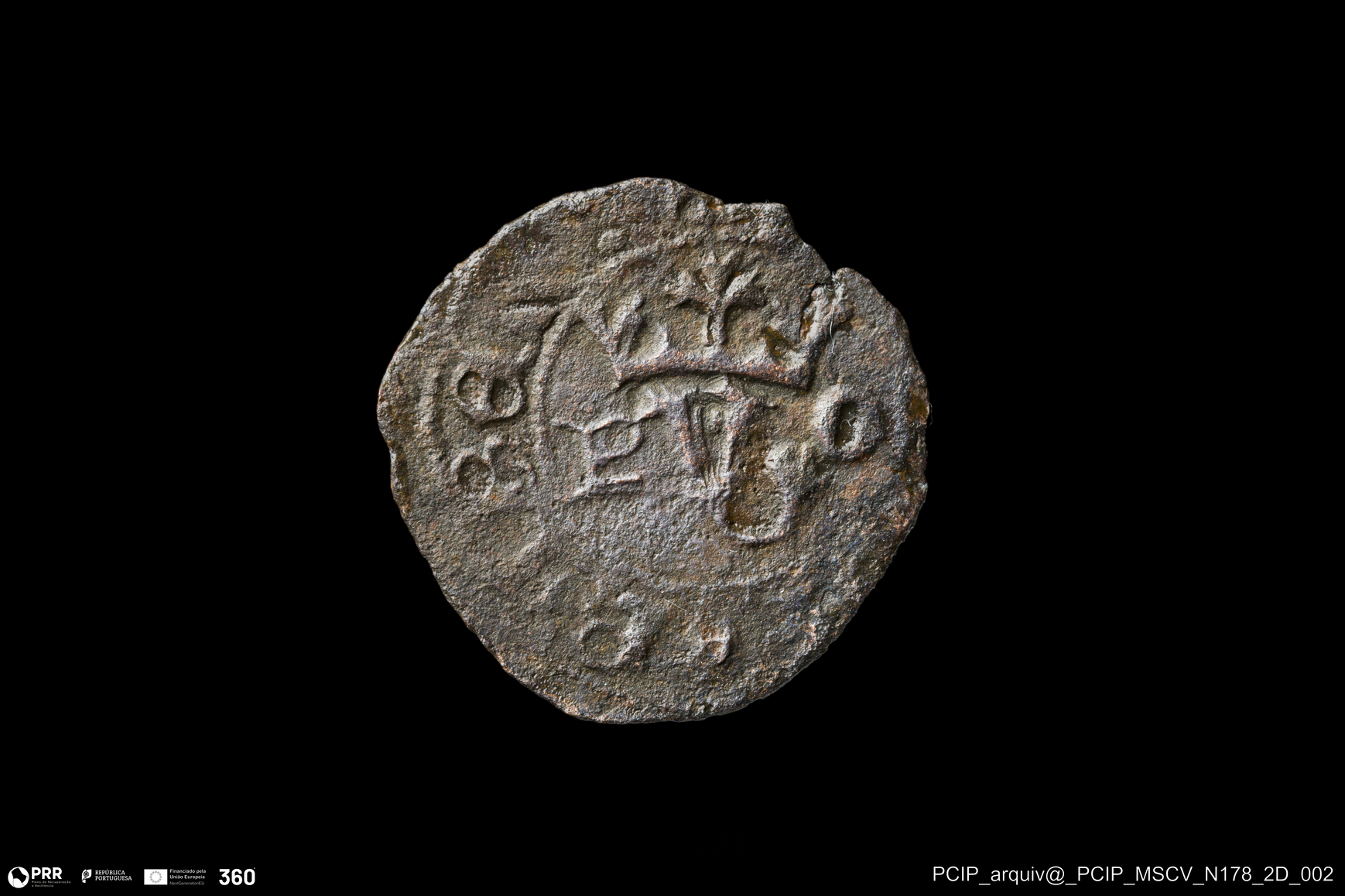 Matéria/Técnica: Metal; Cronologia: Indeterminada; Autoria: Desconhecida; Dimensões: Diâmetro: 18mm.