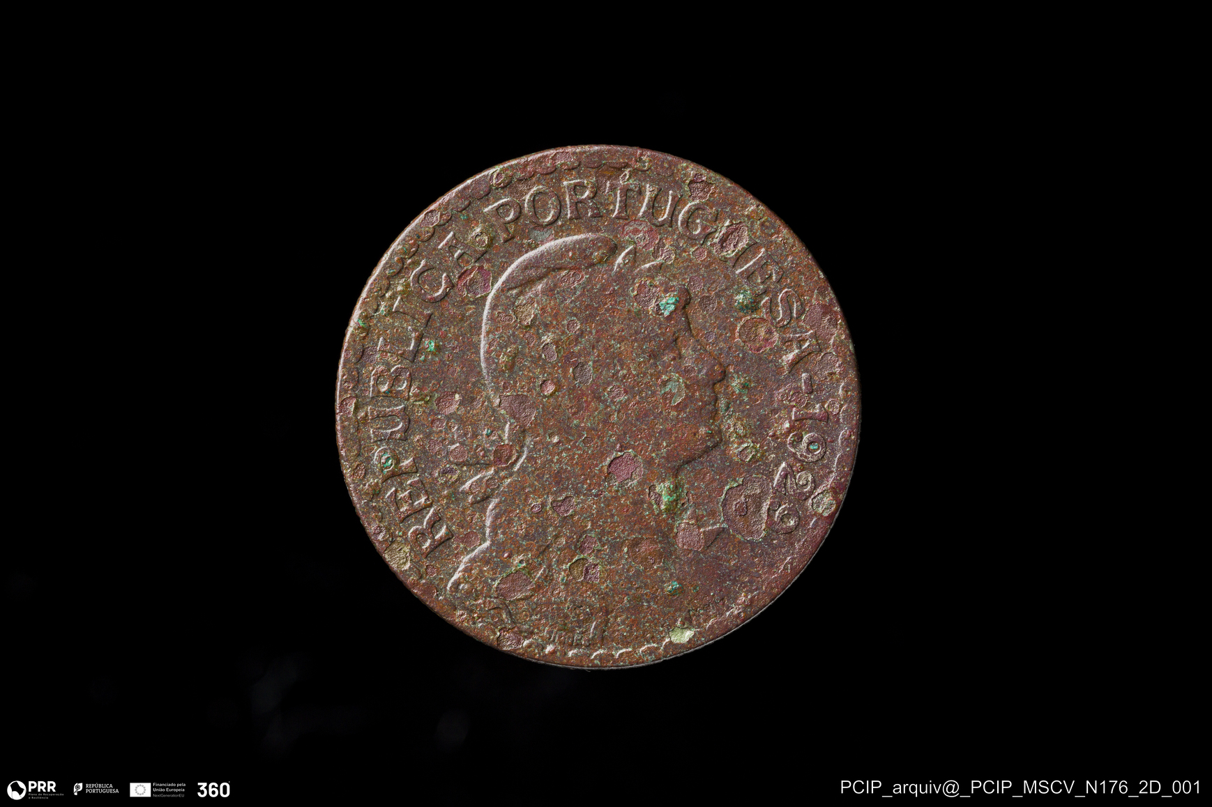 Matéria/Técnica: Metal; Cronologia: Indeterminada; Autoria: Desconhecida; Dimensões: Diâmetro: 27mm; Espessura: 2mm.