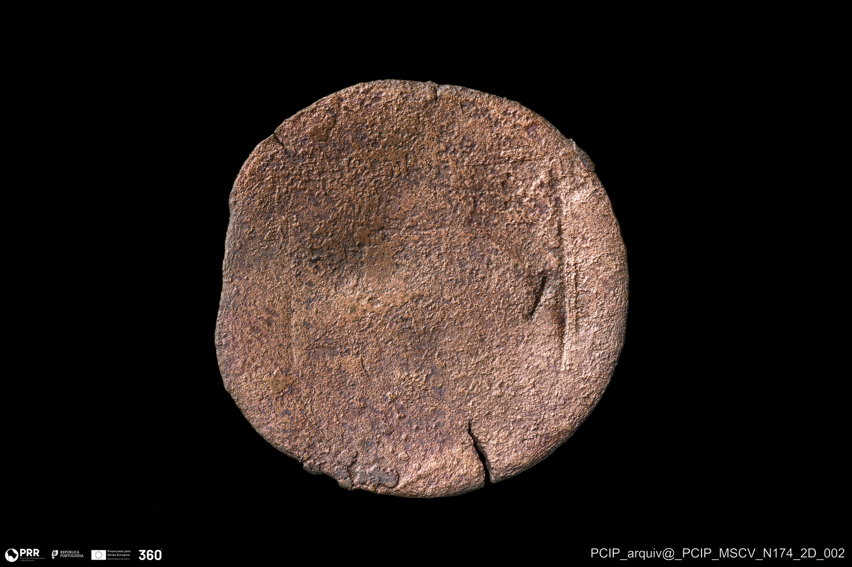 Matéria/Técnica: Metal; Cronologia: Indeterminada; Autoria: Desconhecida; Dimensões: Diâmetro: 22mm; Espessura: 1mm.