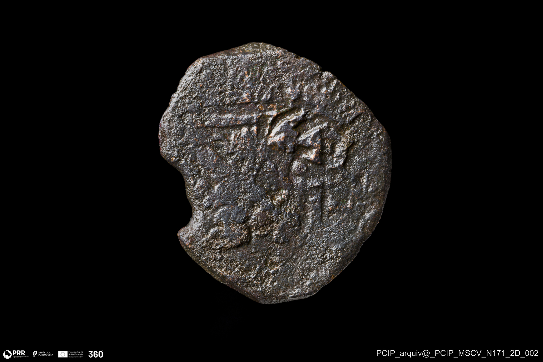 Matéria/Técnica: Metal; Cronologia: Indeterminada; Autoria: Desconhecida; Dimensões: Diâmetro: 22mm; Espessura: 1mm.