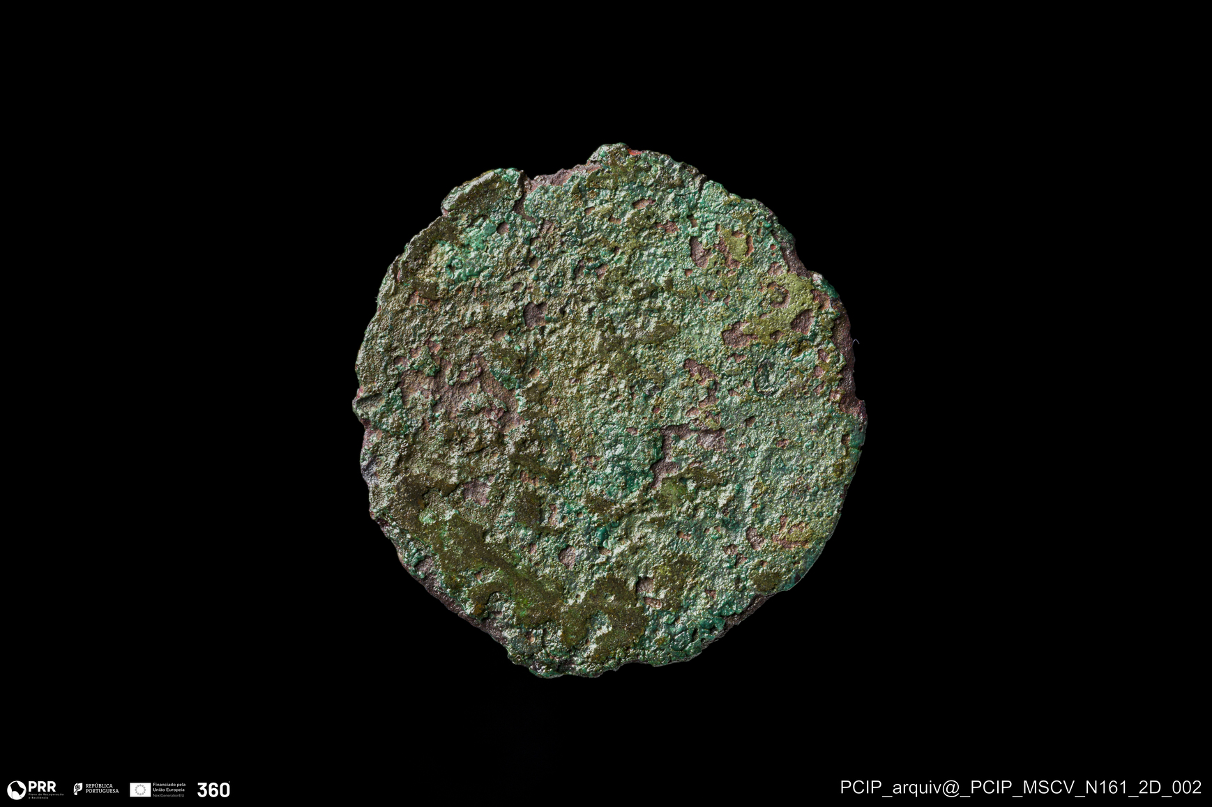 Matéria/Técnica: Metal; Cronologia: Indeterminada; Autoria: Desconhecida; Dimensões: Diâmetro: 19,5mm; Espessura: 1mm.