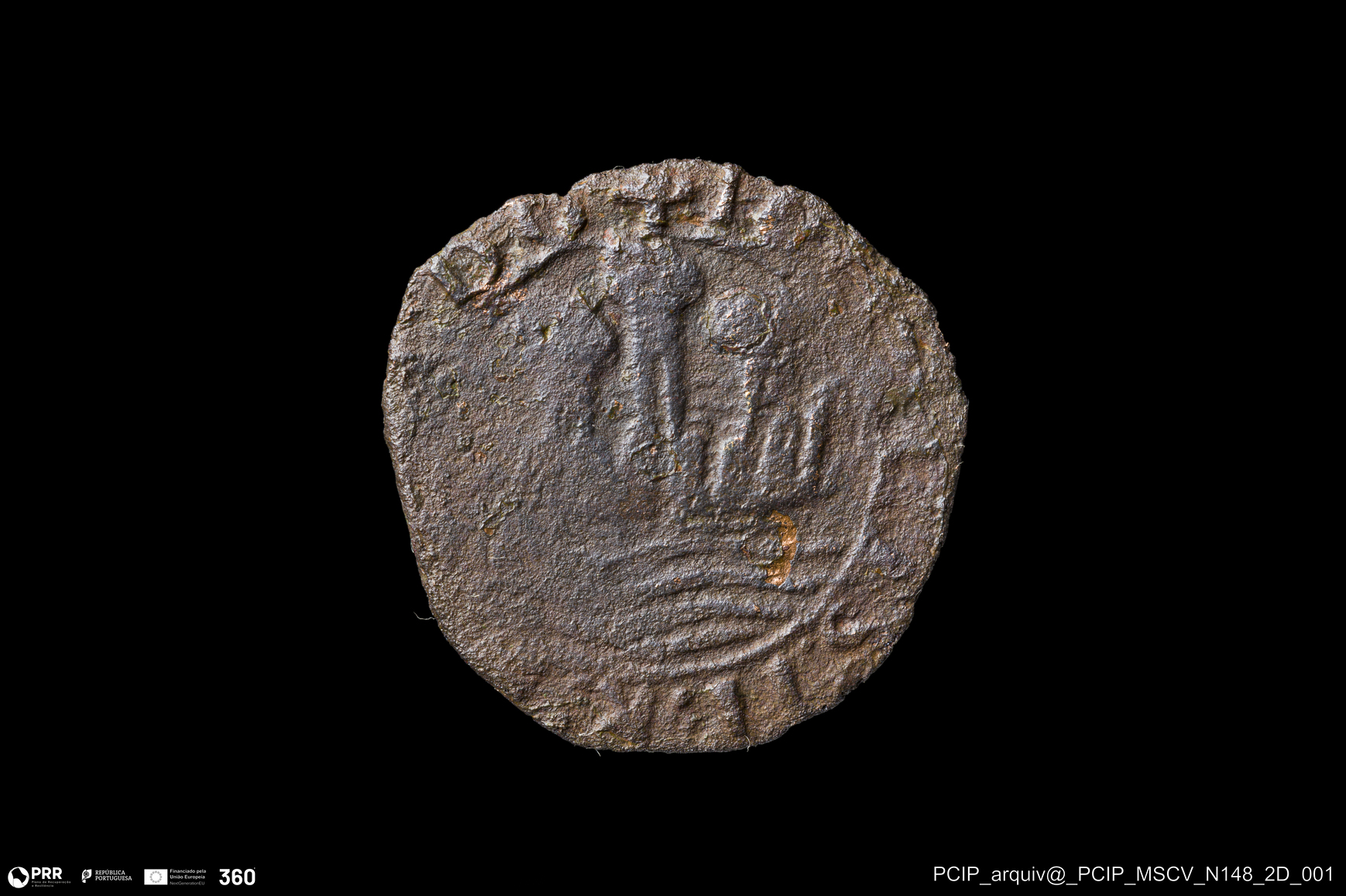 Matéria/Técnica: Metal; Cronologia: Indeterminada; Autoria: Desconhecida; Dimensões: Diâmetro: 19mm; Espessura: 1mm.