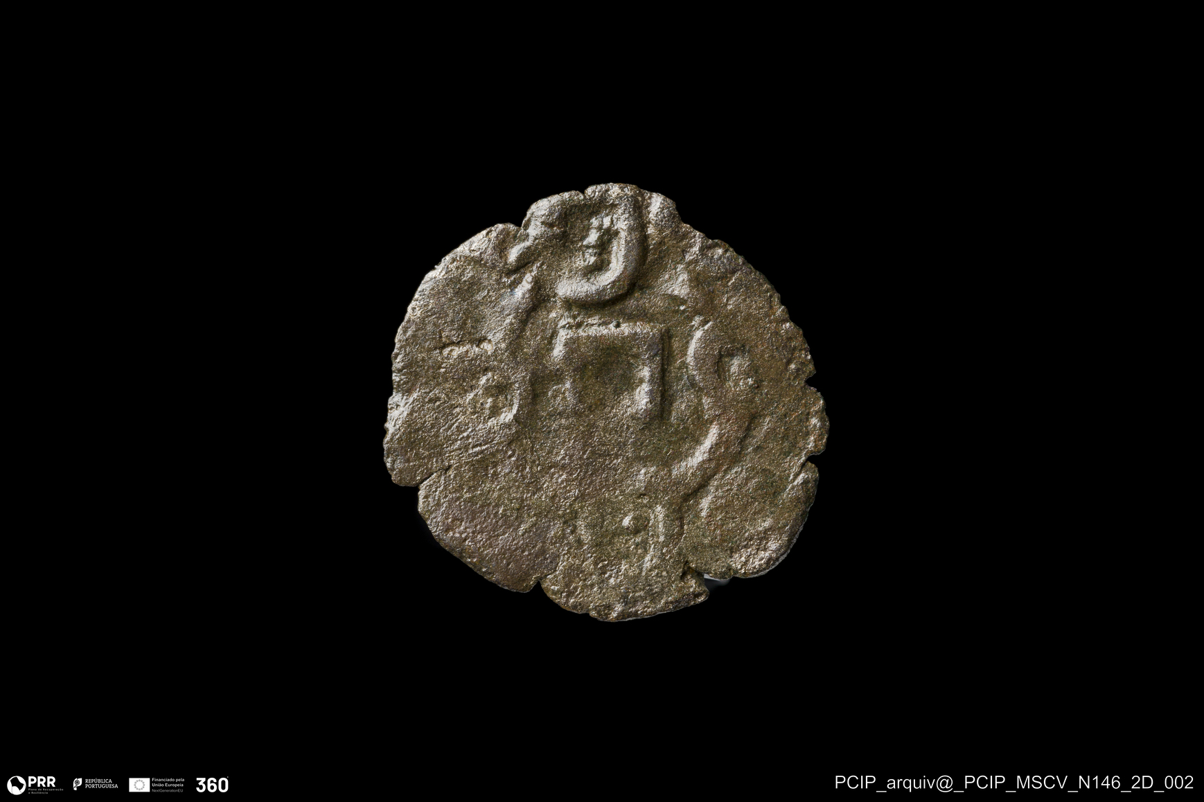 Matéria/Técnica: Metal; Cronologia: Indeterminada; Autoria: Desconhecida; Dimensões: Diâmetro: 16mm; Espessura: 1mm.