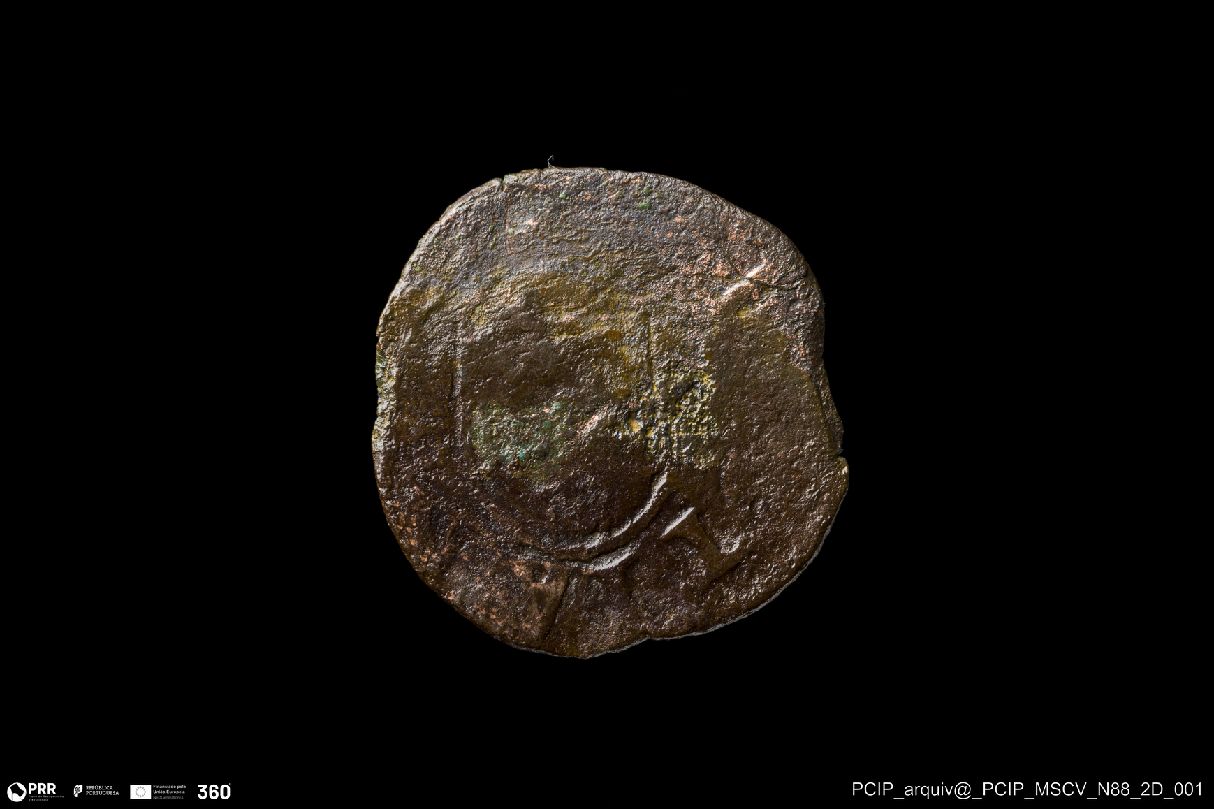 Matéria/Técnica: Metal; Cronologia: Século XVI (?); Autoria: Desconhecida; Dimensões: Diâmetro: 15mm.