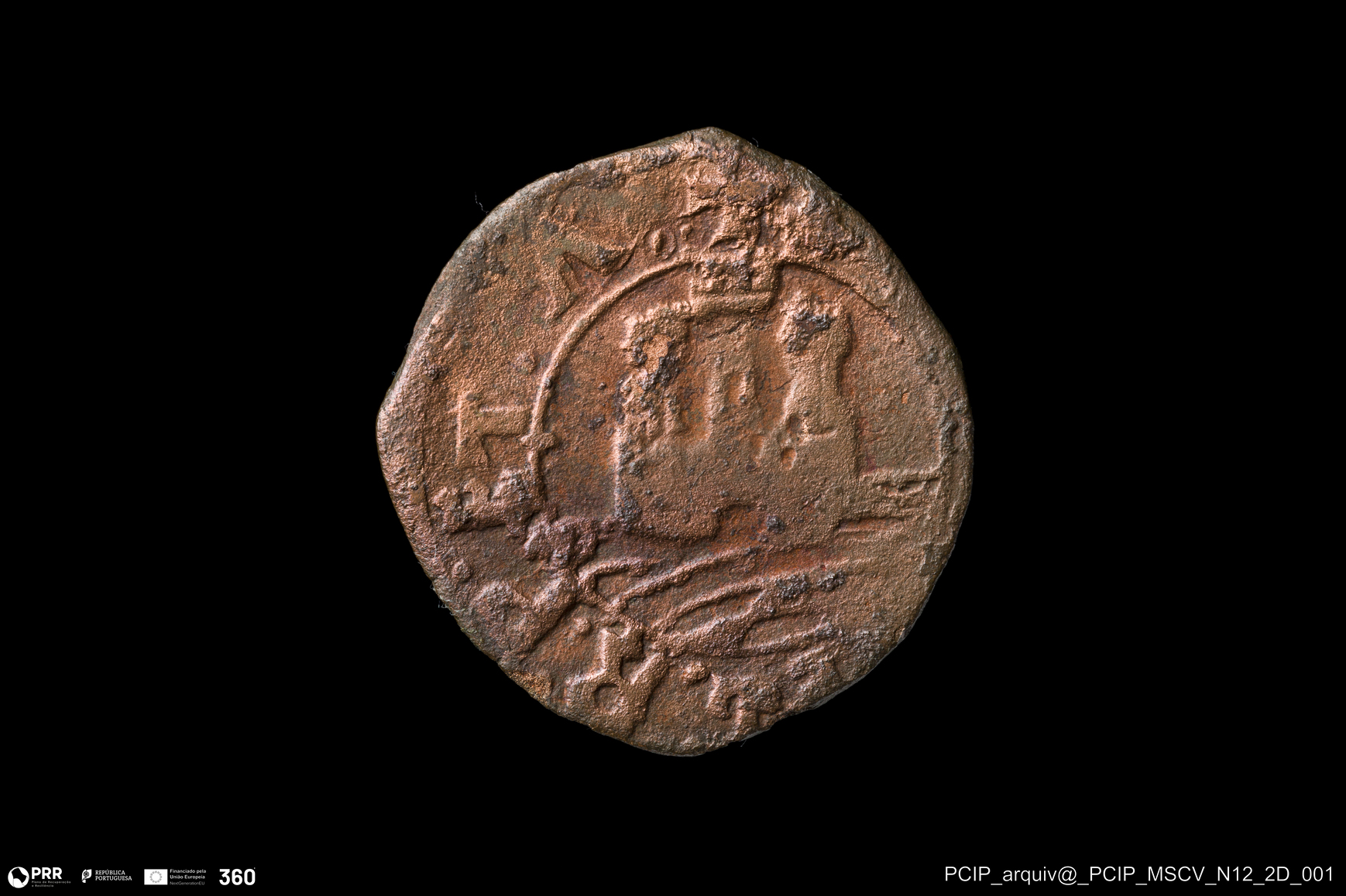 Matéria/Técnica: Cobre; Cronologia: Século XV - Século XVI (?); Autoria: Desconhecida; Dimensões: Diâmetro: 18mm.