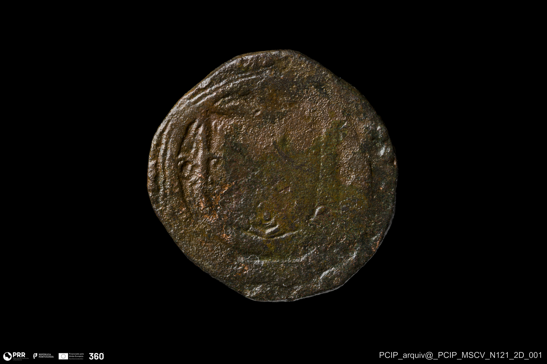 Matéria/Técnica: Metal; Cronologia: Indeterminada; Autoria: Desconhecida; Dimensões: Diâmetro: 18mm; Espessura: 1,5mm.