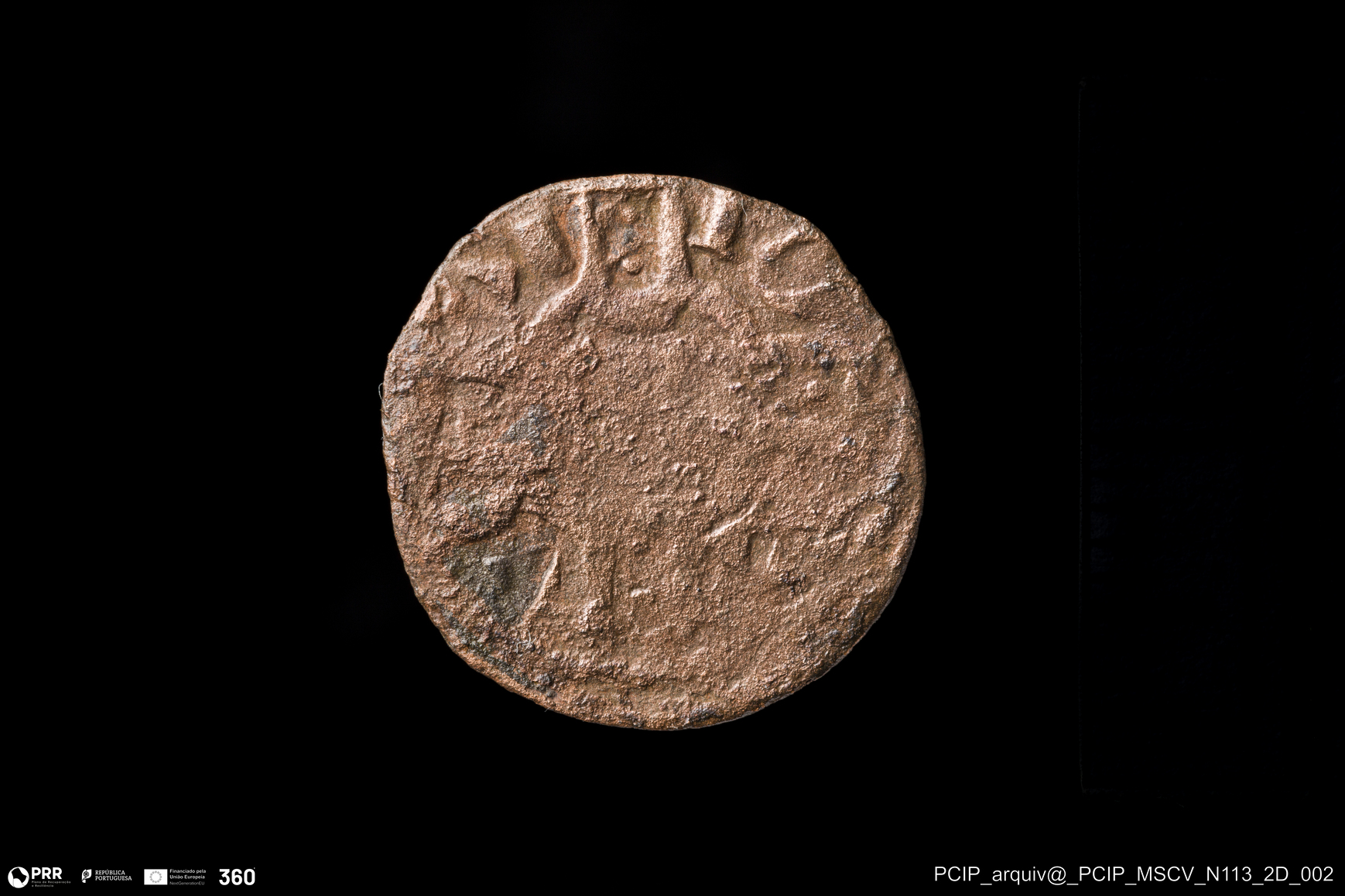 Matéria/Técnica: Metal; Cronologia: Indeterminada; Autoria: Desconhecida; Dimensões: Diâmetro: 16mm; Espessura: 1mm.