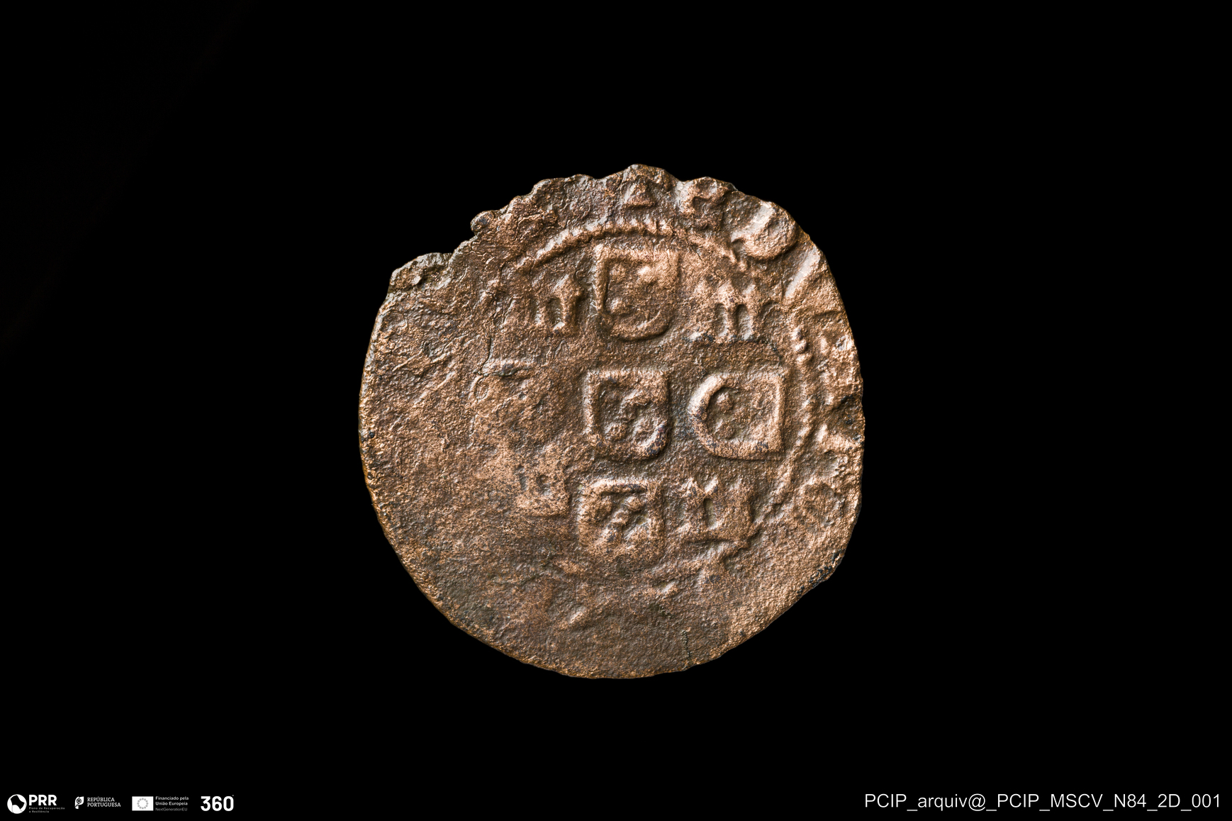 Matéria/Técnica: Bolhão; Cronologia: Século XIV-Século XV (?); Autoria: Desconhecida; Dimensões: Diâmetro: 21mm.