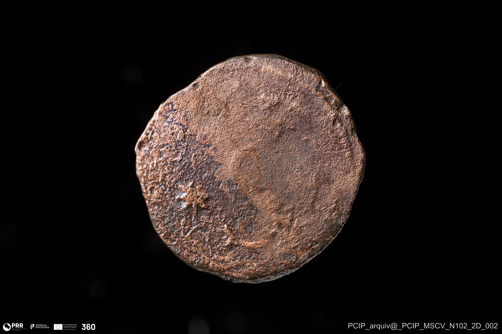 Matéria/Técnica: Metal; Cronologia: Indeterminada; Autoria: Desconhecida; Dimensões: Diâmetro: 23mm; Espessura: 1mm.