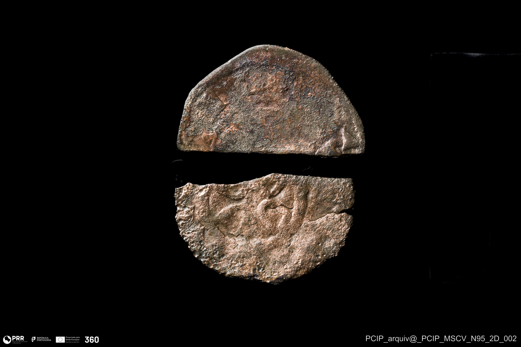 Matéria/Técnica: Metal; Cronologia: Indeterminada; Autoria: Desconhecida; Dimensões: Diâmetro: 16,5mm; Espessura: 1mm.
