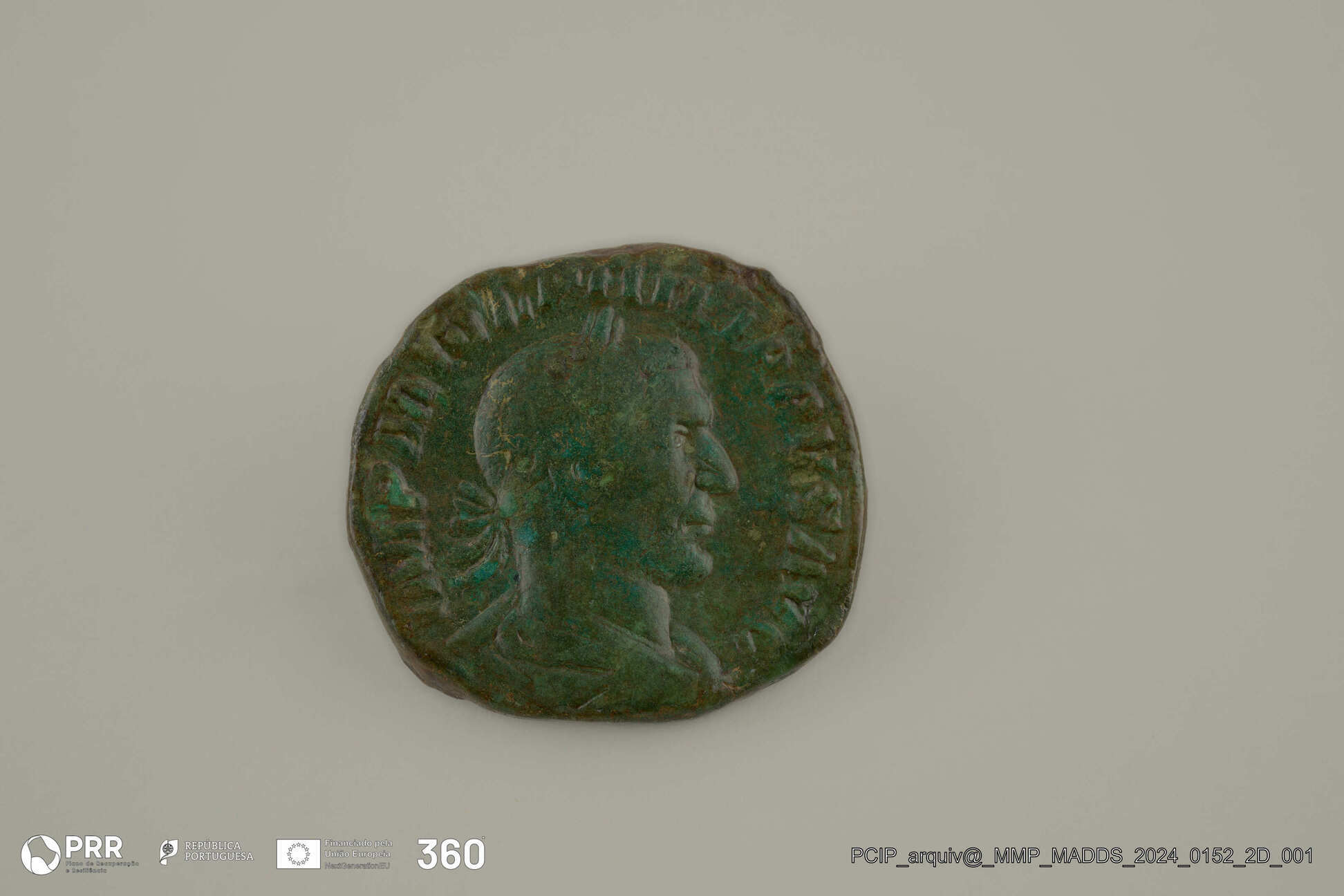 Matéria/Técnica: Bronze; Cronologia: Romano; Autoria: Desconhecida; Dimensões (cm): 3 x 3,5 .