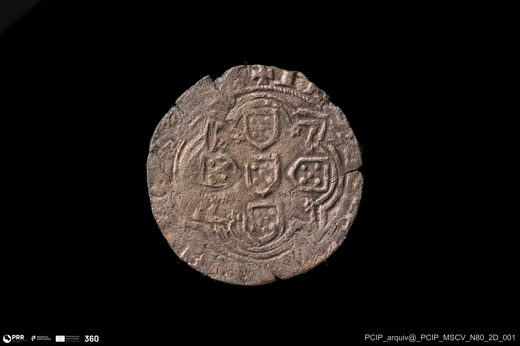 Matéria/Técnica: Metal; Cronologia: Indeterminada; Autoria: Desconhecida; Dimensões: Diâmetro: 27mm.