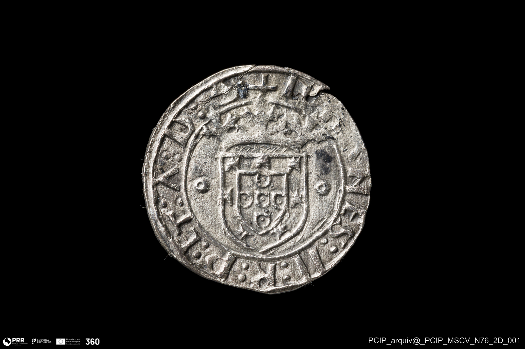 Matéria/Técnica: Prata; Cronologia: Século XV; Autoria: Desconhecida; Dimensões: Diâmetro: 20mm.