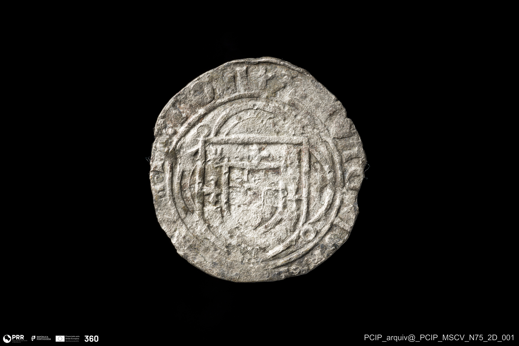 Matéria/Técnica: Bolhão (liga de prata e cobre) ?; Cronologia: Século XV; Autoria: Desconhecida; Dimensões: Diâmetro: 21mm.