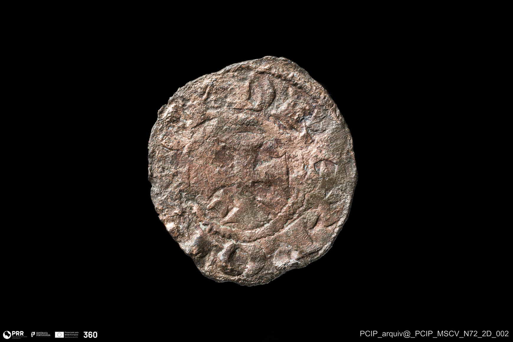 Matéria/Técnica: Bolhão; Cronologia: Século XIII; Autoria: Desconhecida; Dimensões: Diâmetro: 16mm.