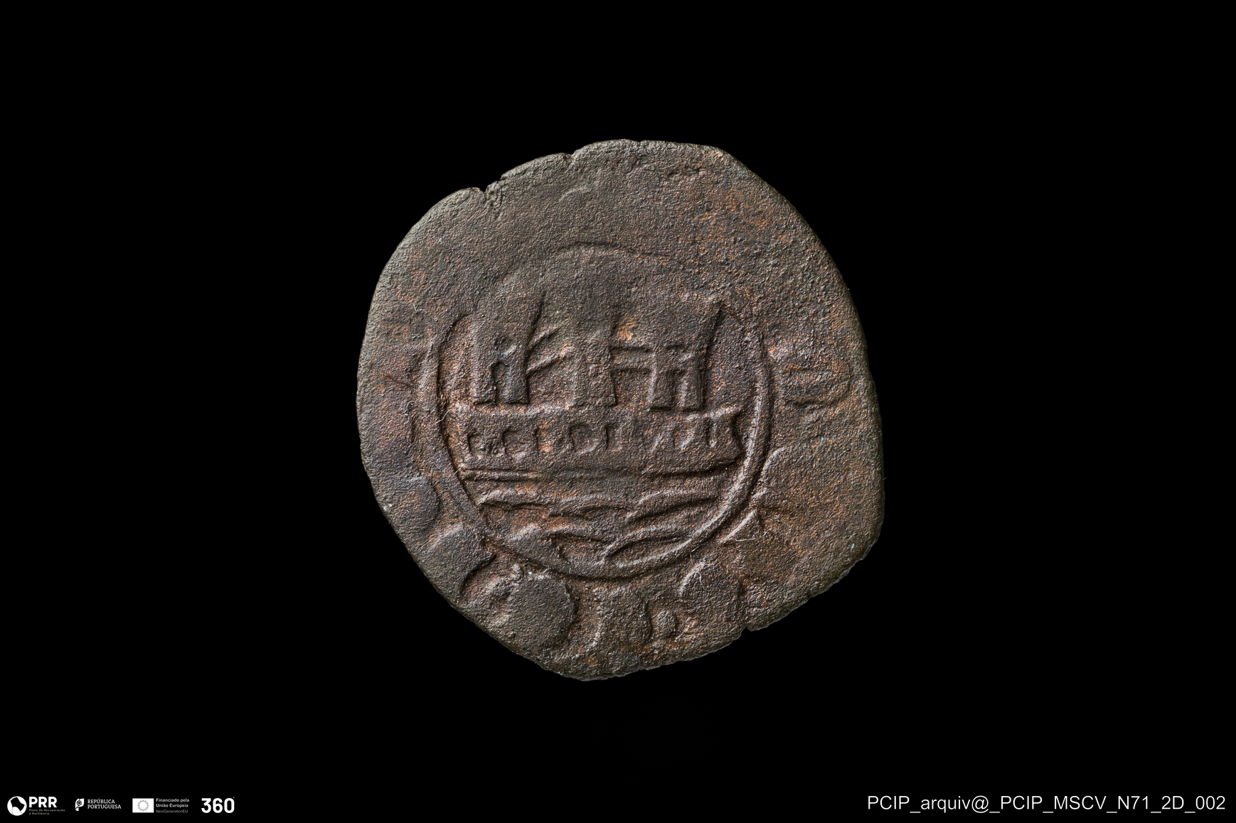 Matéria/Técnica: Cobre; Cronologia: Século XV; Autoria: Desconhecida; Dimensões: Diâmetro: 21mm.