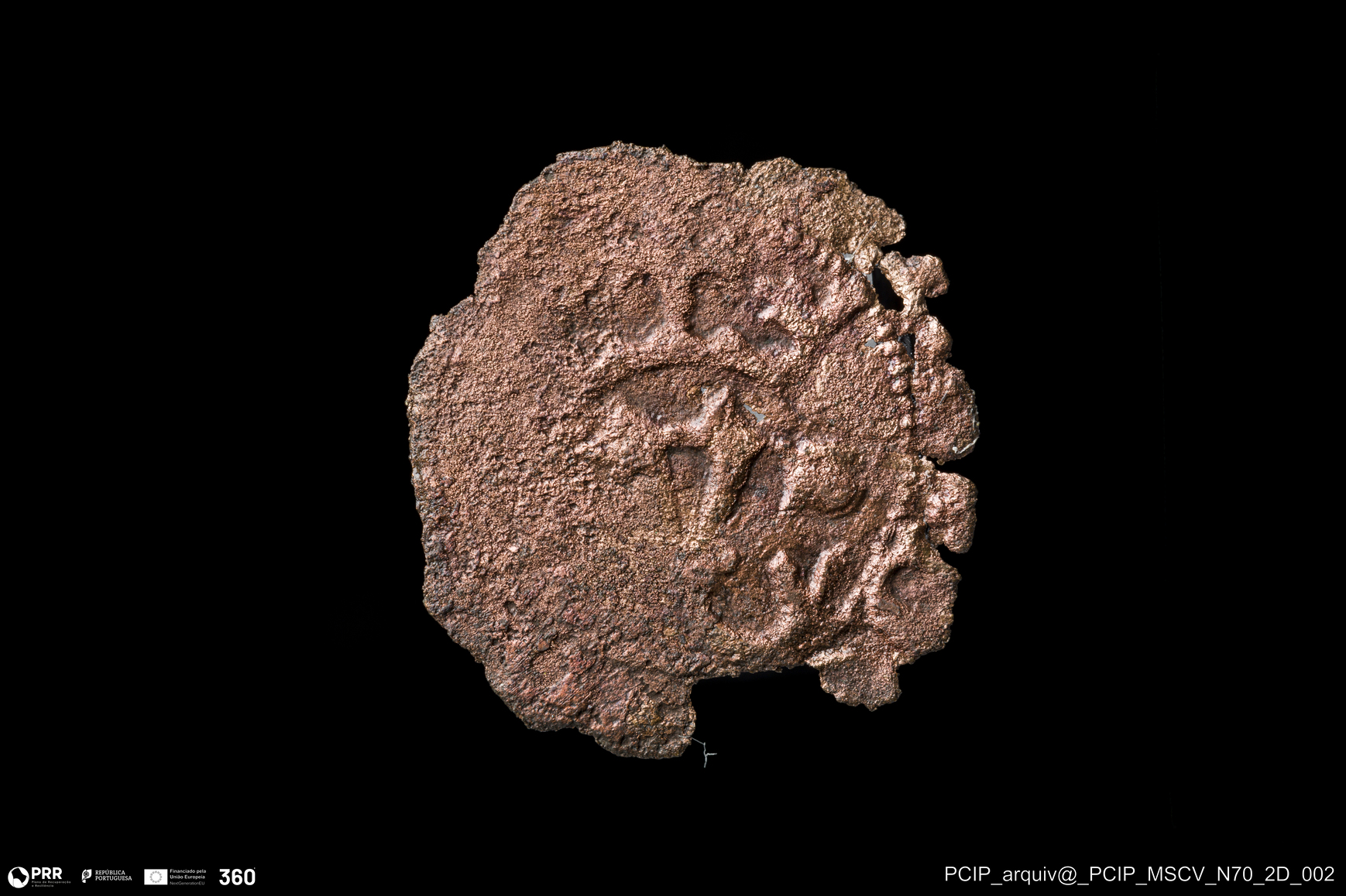 Matéria/Técnica: Metal; Cronologia: Indeterminada; Autoria: Desconhecida; Dimensões: Diâmetro: 16mm; Espessura: 1mm.