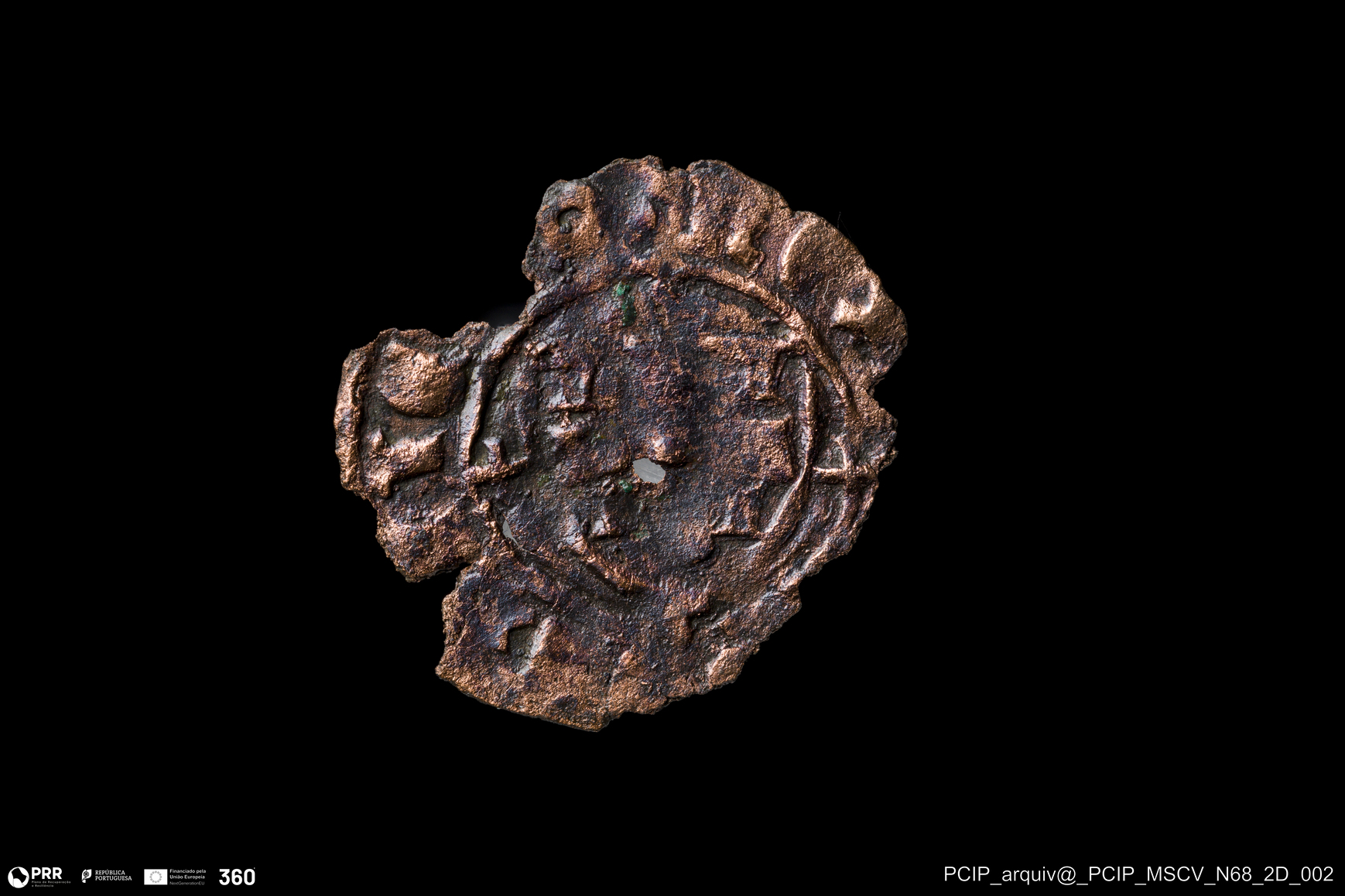 Matéria/Técnica: Metal; Cronologia: Indeterminada; Autoria: Desconhecida; Dimensões: Diâmetro: 21mm; Espessura: 1mm.