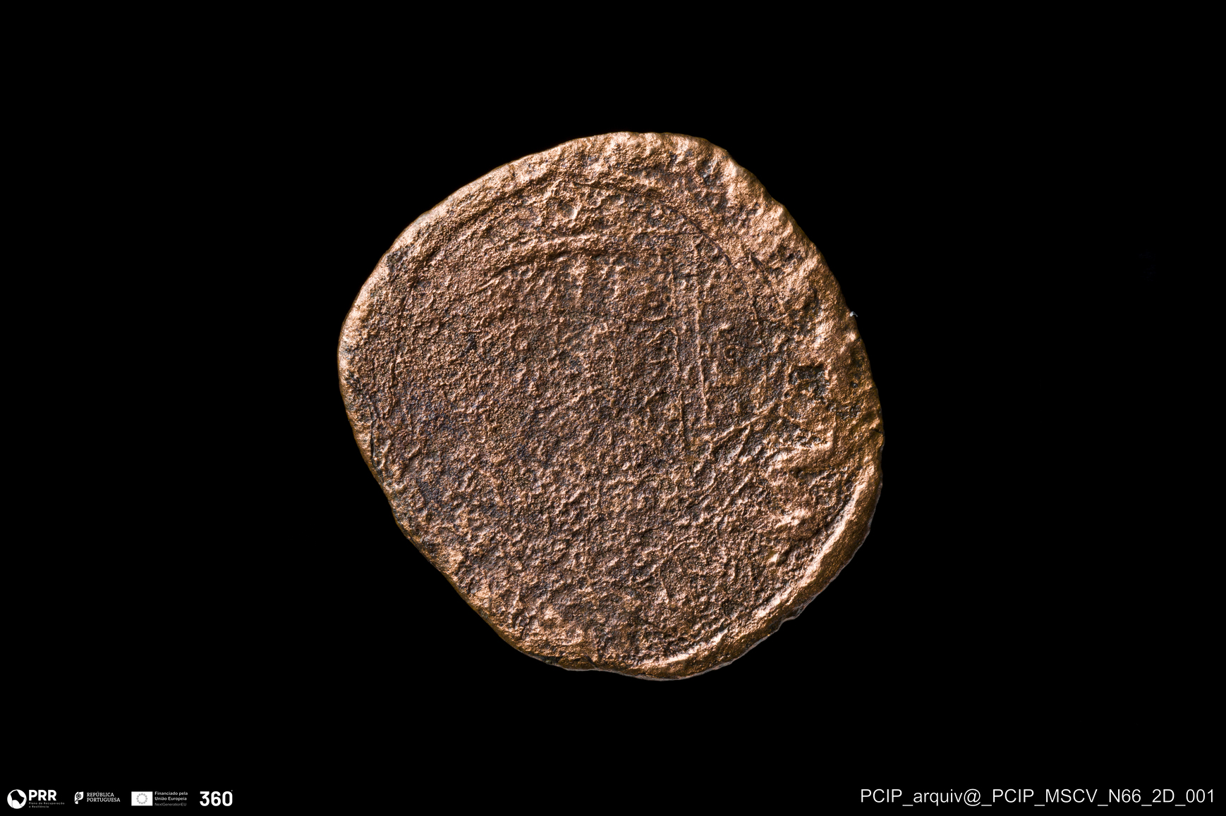 Matéria/Técnica: Metal; Cronologia: Indeterminada; Autoria: Desconhecida; Dimensões: Diâmetro: 19mm; Espessura: 1mm.