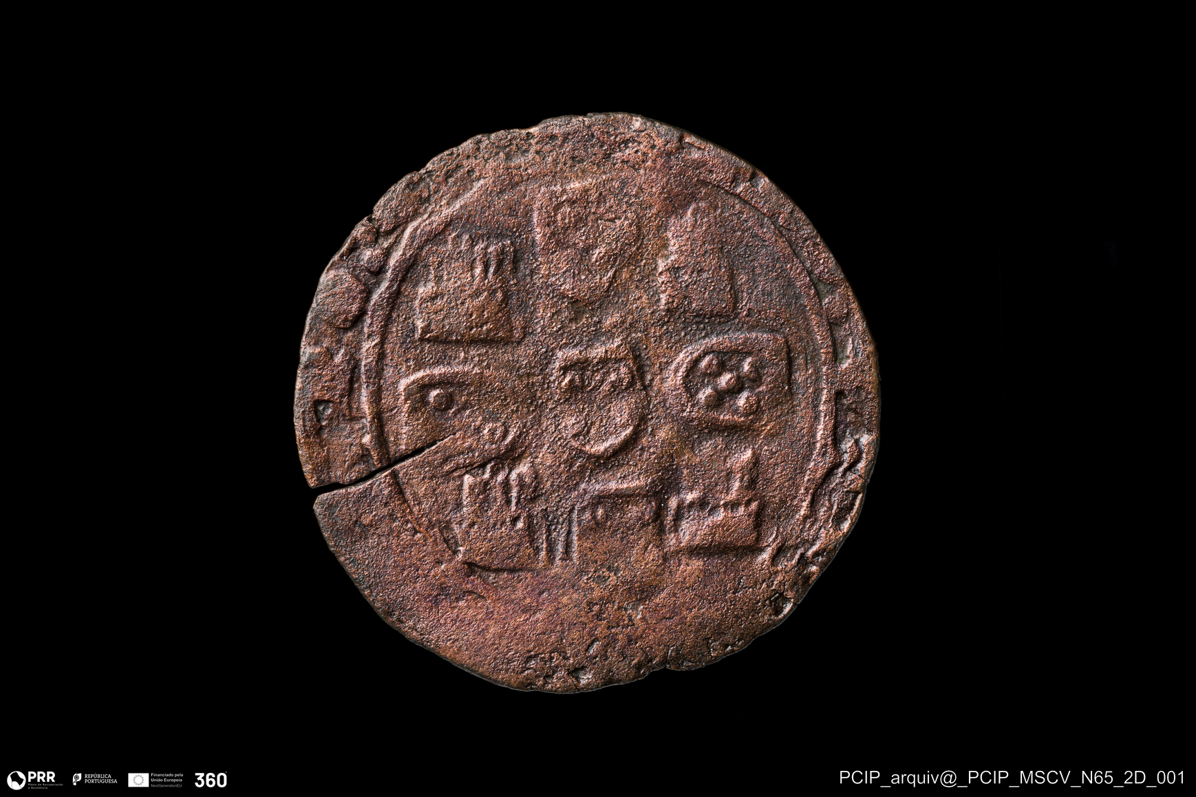 Matéria/Técnica: Metal; Cronologia: Século XIV- Século XV; Autoria: Desconhecida; Dimensões: Diâmetro: 24mm; Espessura: 0,5mm.