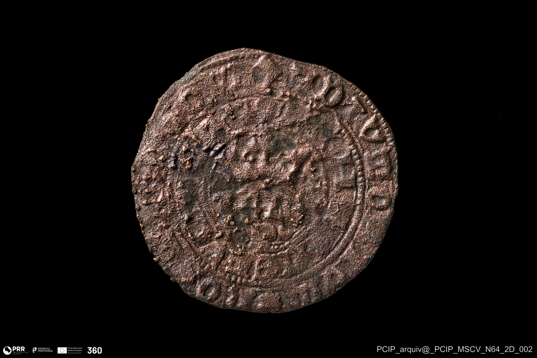 Matéria/Técnica: Metal; Cronologia: Século XIII-Século XIV; Autoria: Desconhecida; Dimensões: Diâmetro: 25mm; Espessura: 1mm.