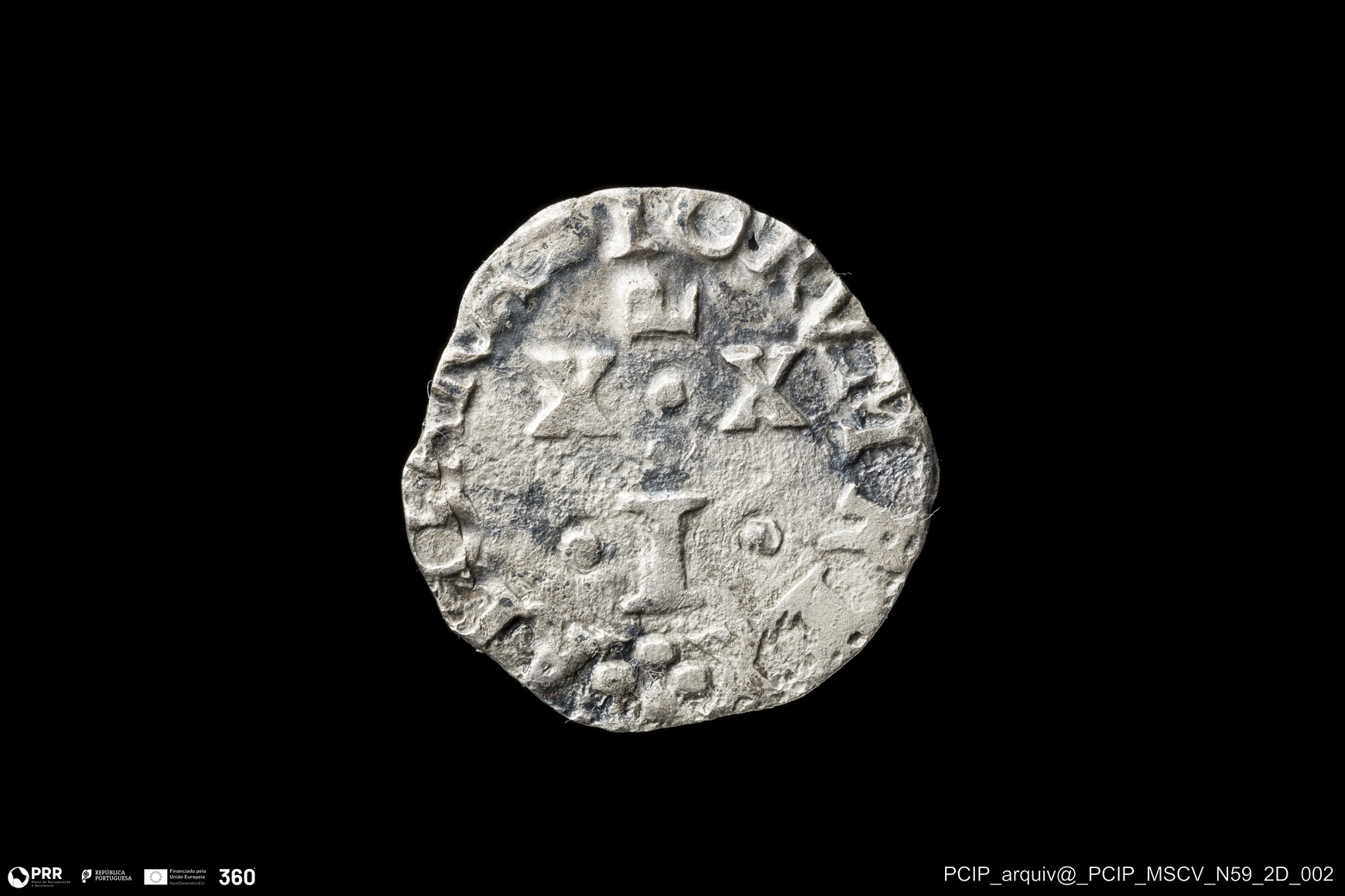 Matéria/Técnica: Prata; Cronologia: Indeterminada; Autoria: Desconhecida; Dimensões: Diâmetro: 16mm.