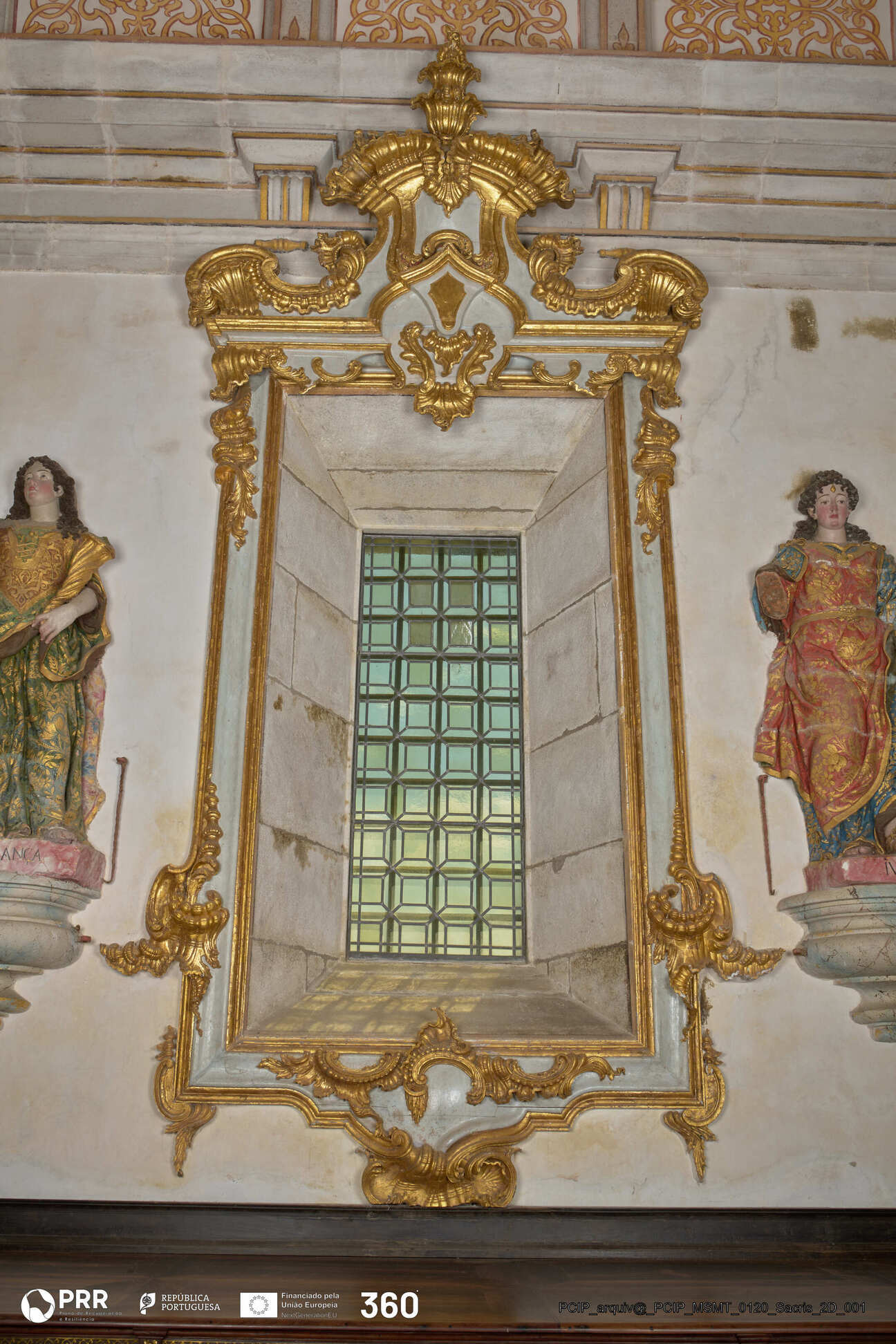 Matéria/Técnica: Madeira entalhada e dourada / Entalhamento e douramento; Cronologia: 1758-1761; Autoria: André Soares; Dimensões (cm): 315 x 215.