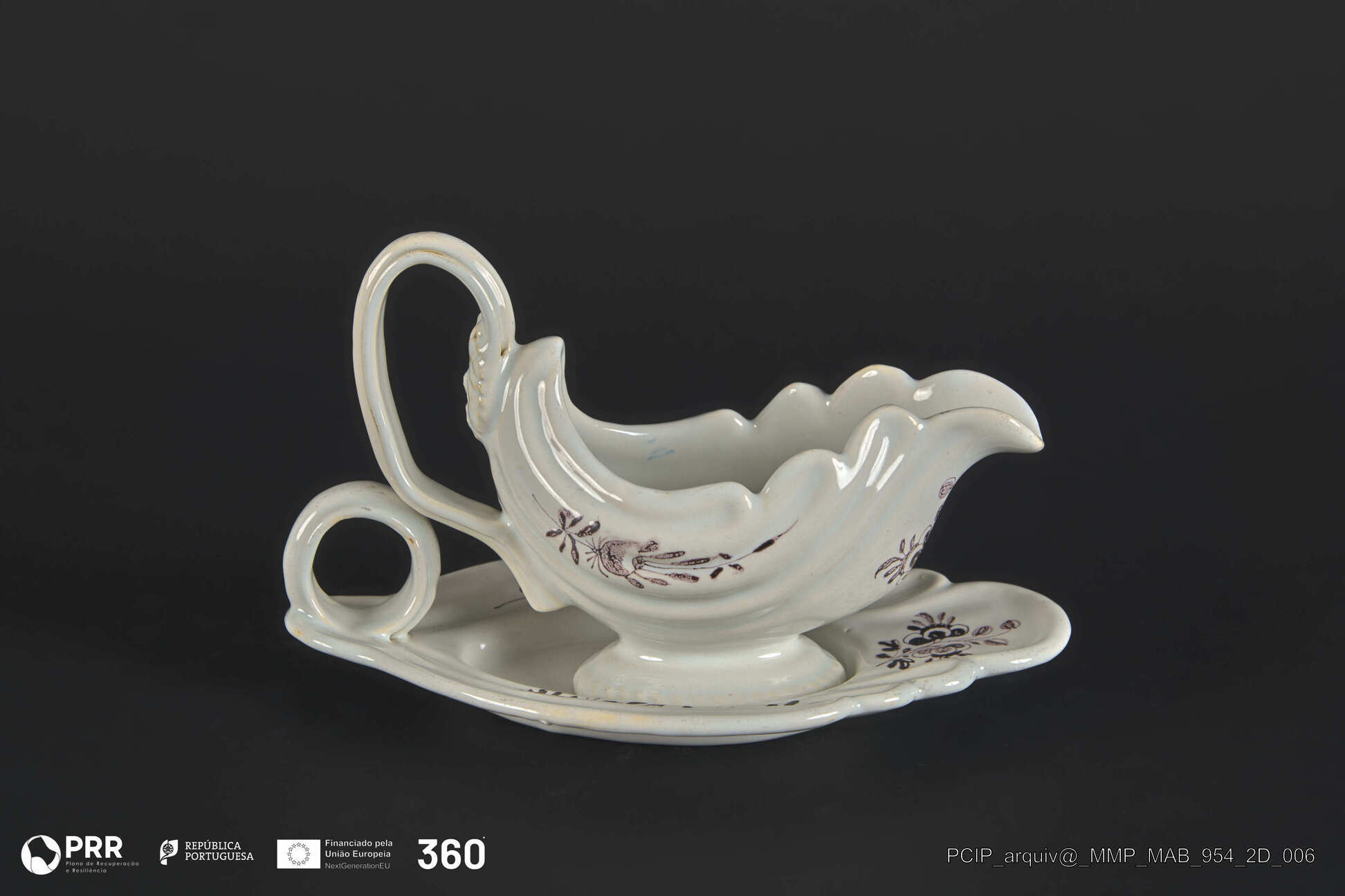 Matéria/Técnica: Faiança moldada, e decoração pintada a vinoso; Cronologia: Desconhecida; Autoria: Desconhecida; Dimensões: Desconhecidas.
