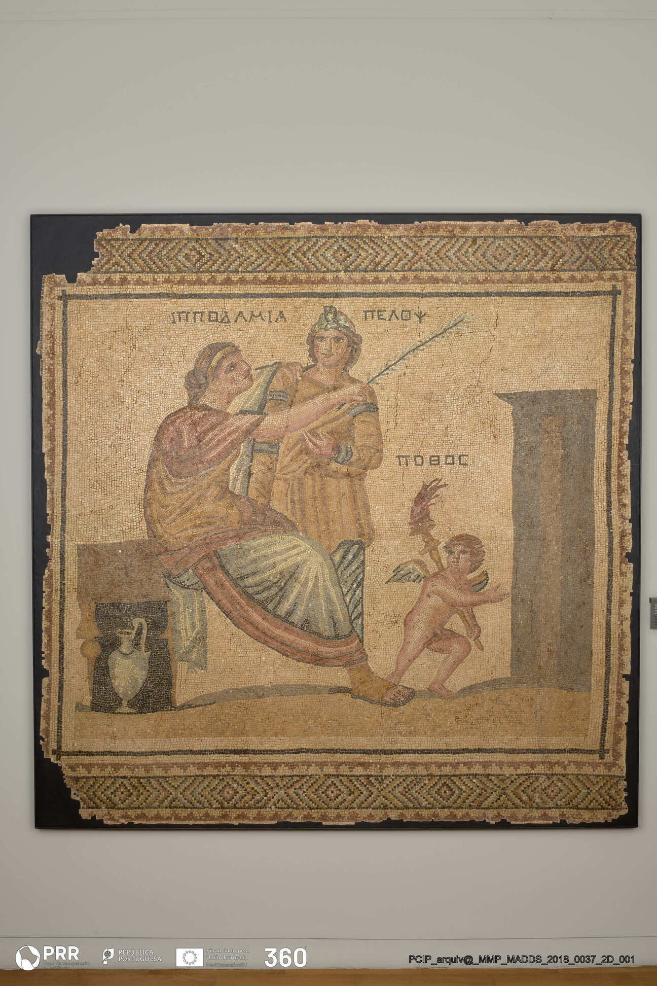Matéria/Técnica: Mármore e Vidro; Cronologia: Finais século III d.C; Autoria: Desconhecida; Dimensões (cm): 201 x 204 x 5 .