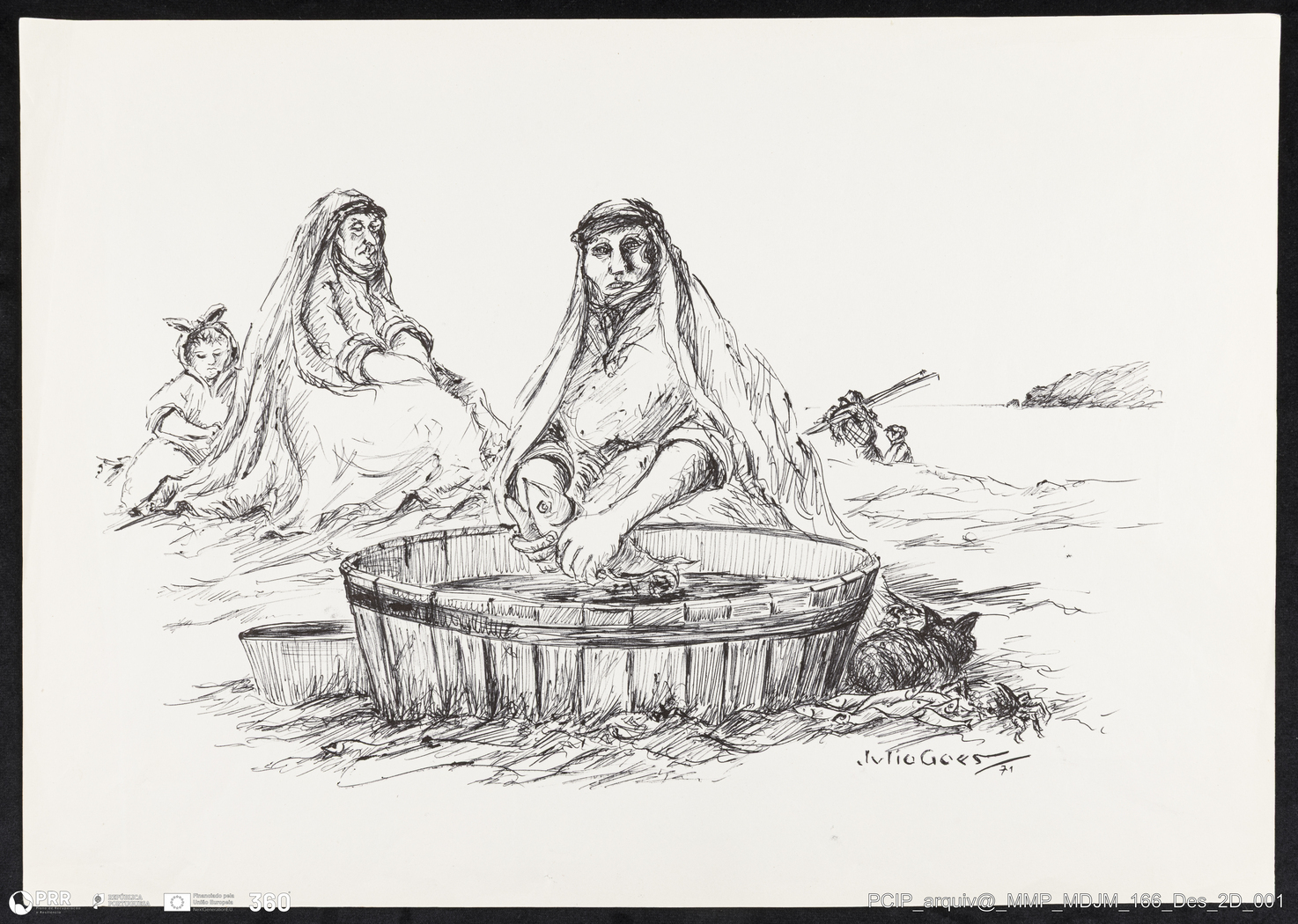 Matéria/Técnica: Desenho a esferográfica sobre papel; Cronologia: 1971; Autoria: Júlio Goes; Dimensões: Altura: 30,6 cm x Largura: 43,2 cm.