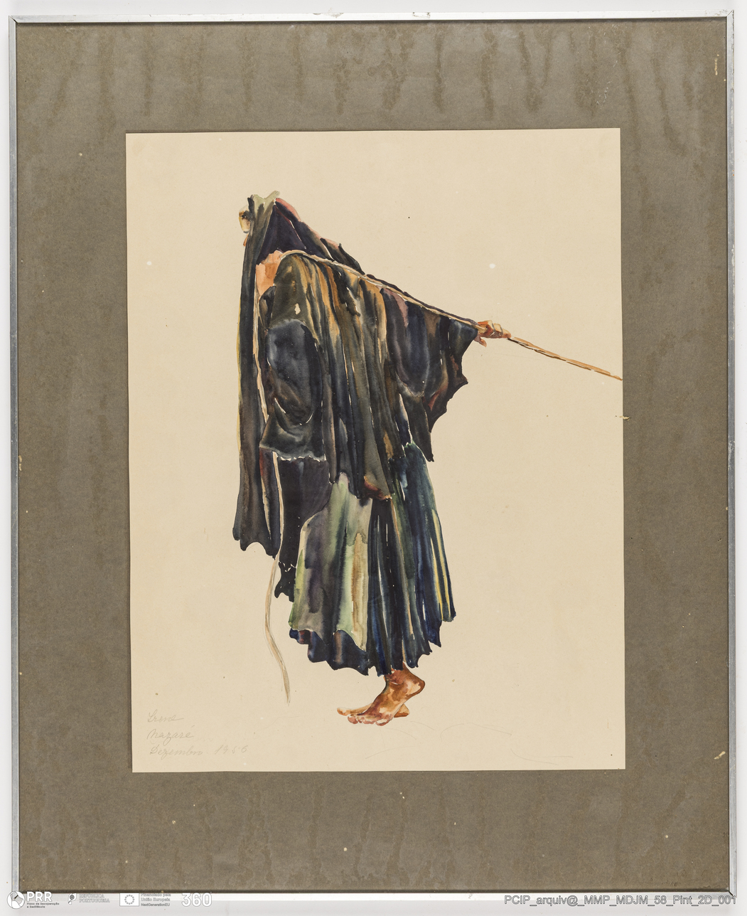 Matéria/Técnica: Aguarela sobre papel; Cronologia: 1956; Autoria: Irene Sá Vieira Natividade; Dimensões: Altura: 40 cm x Largura: 30 cm.