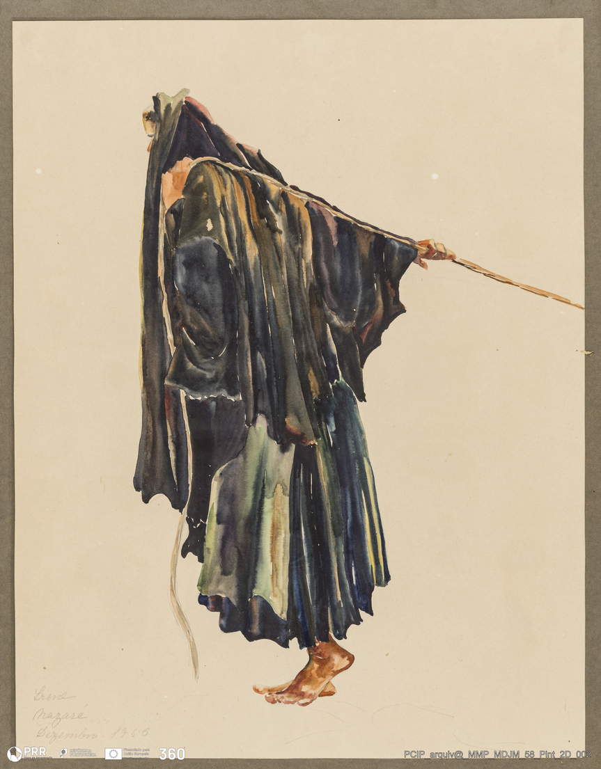 Matéria/Técnica: Aguarela sobre papel; Cronologia: 1956; Autoria: Irene Sá Vieira Natividade; Dimensões: Altura: 40 cm x Largura: 30 cm.
