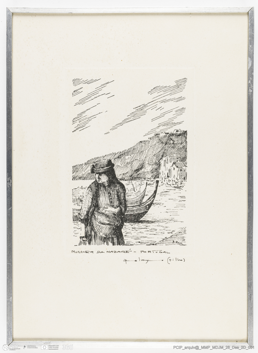 Matéria/Técnica: Tinta da china sobre papel; Cronologia: Séc. XX; Autoria: Pedro Olaio (filho); Dimensões: Altura: 32,2 cm x Largura: 23,6 cm.