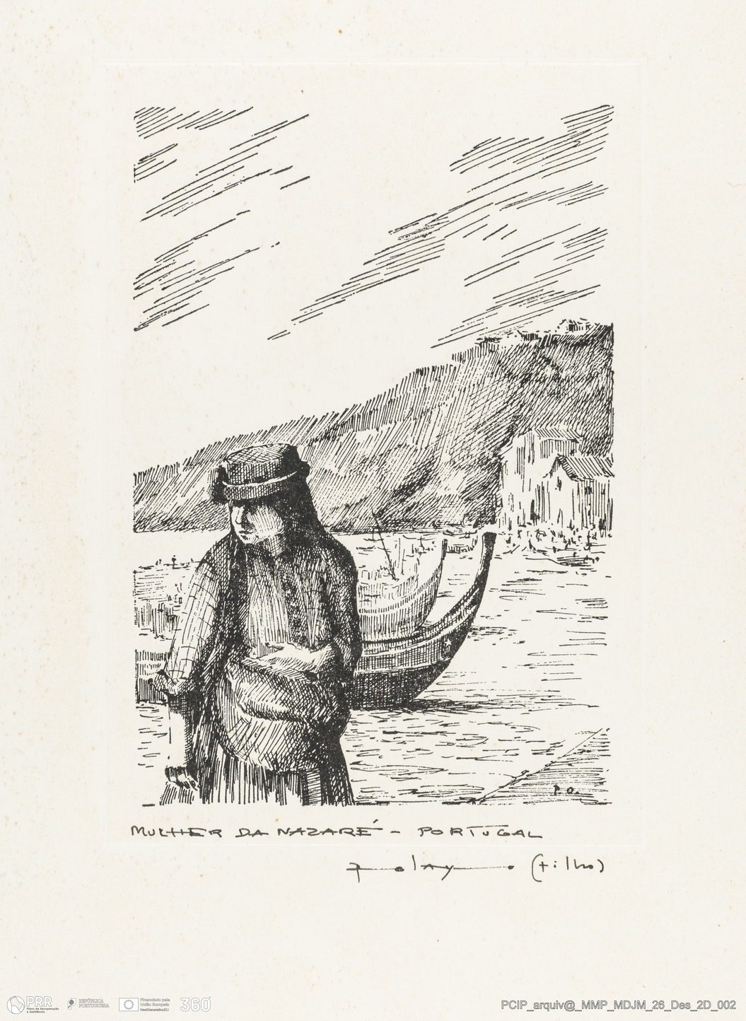 Matéria/Técnica: Tinta da china sobre papel; Cronologia: Séc. XX; Autoria: Pedro Olaio (filho); Dimensões: Altura: 32,2 cm x Largura: 23,6 cm.